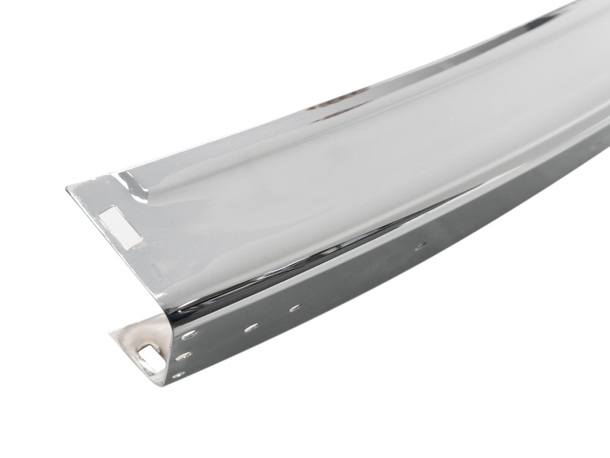 This bumper has holes for the front rubber pad strips, and is made of thicker steel and a much higher quality chrome finish than the previous chrome bumpers we have been offering.