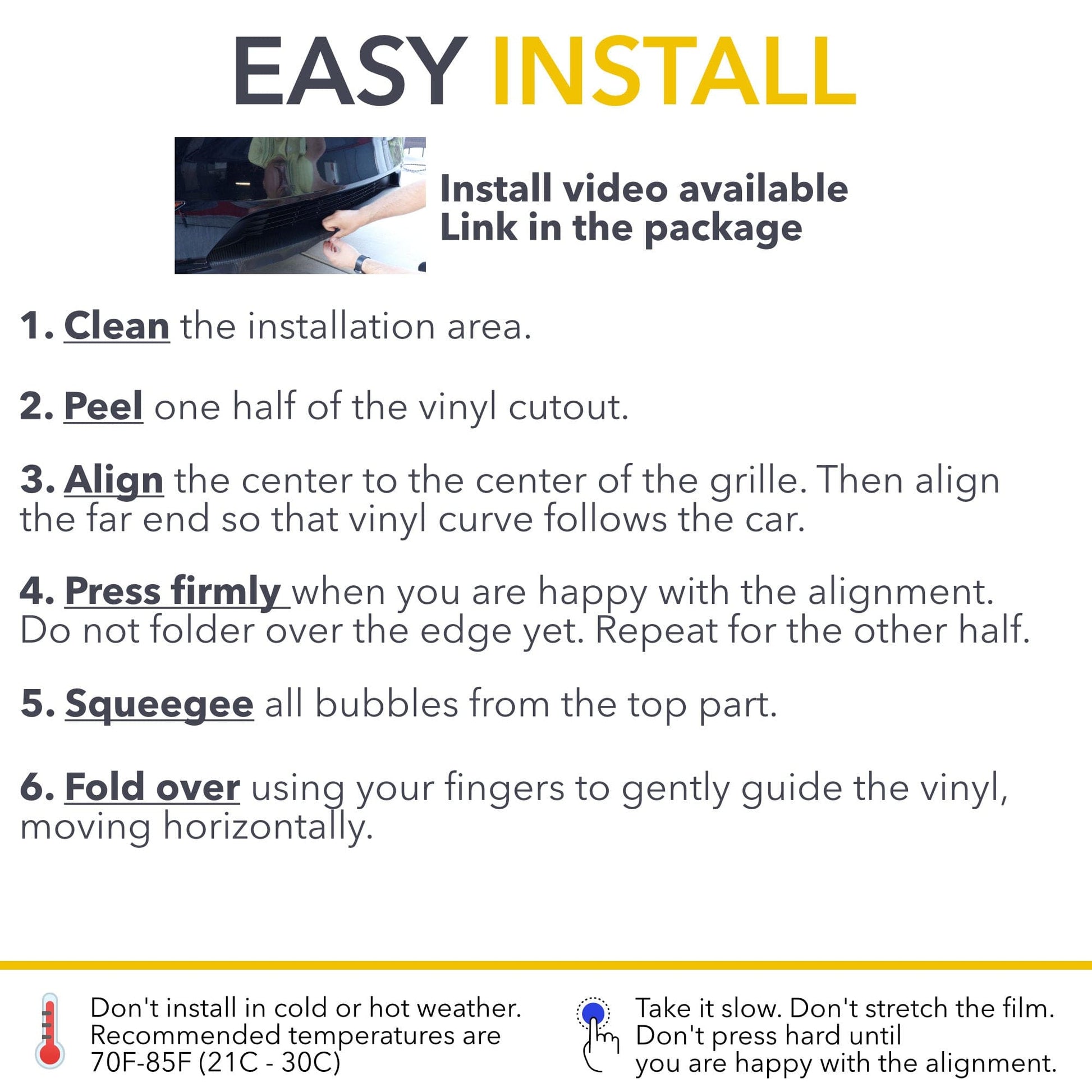 - Seamless OEM Look: Designed for a precise fit, the vinyl extends slightly beyond the edge, wrapping around just a little bit to ensure a complete look, as well as easy DYI installation. This meticulous attention to detail guarantees a seamless integration with your vehicle's existing design elements.
