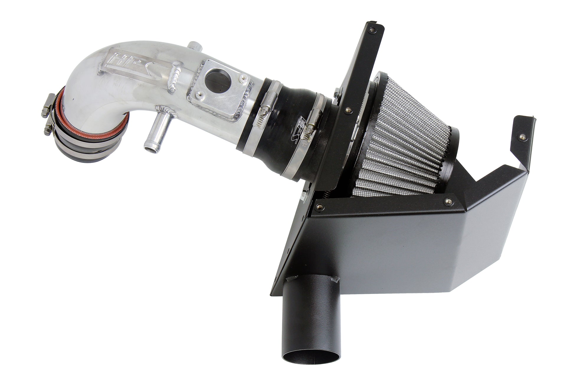 HPS Performance Air Intake Kits are designed with style and performance in mind. This HPS Performance Air Intake Kit replaces the factory intake and air filter housing with a 3" custom mandrel-bent aluminum tube and heavy duty powder coated heat shield designed to maximize the performance of this vehicle. The heat shield integrates with the factory air scoop and features a lid to keep intake air temperatures cool. It also includes a reusable high-flow cotton air filter to provide maximum airflow to increase the engine's output by up to 9.9 horsepower and 13.3 lb-ft. of torque for power that's felt through improved throttle response and acceleration. This kit features both HPS 100% stainless steel T-bolt clamps and a silicone reducer coupler that are engineered to withstand the toughest driving conditions. HPS Performance Air Intake Kits are designed and tested using the latest technology to ensure the best performance and fitment.