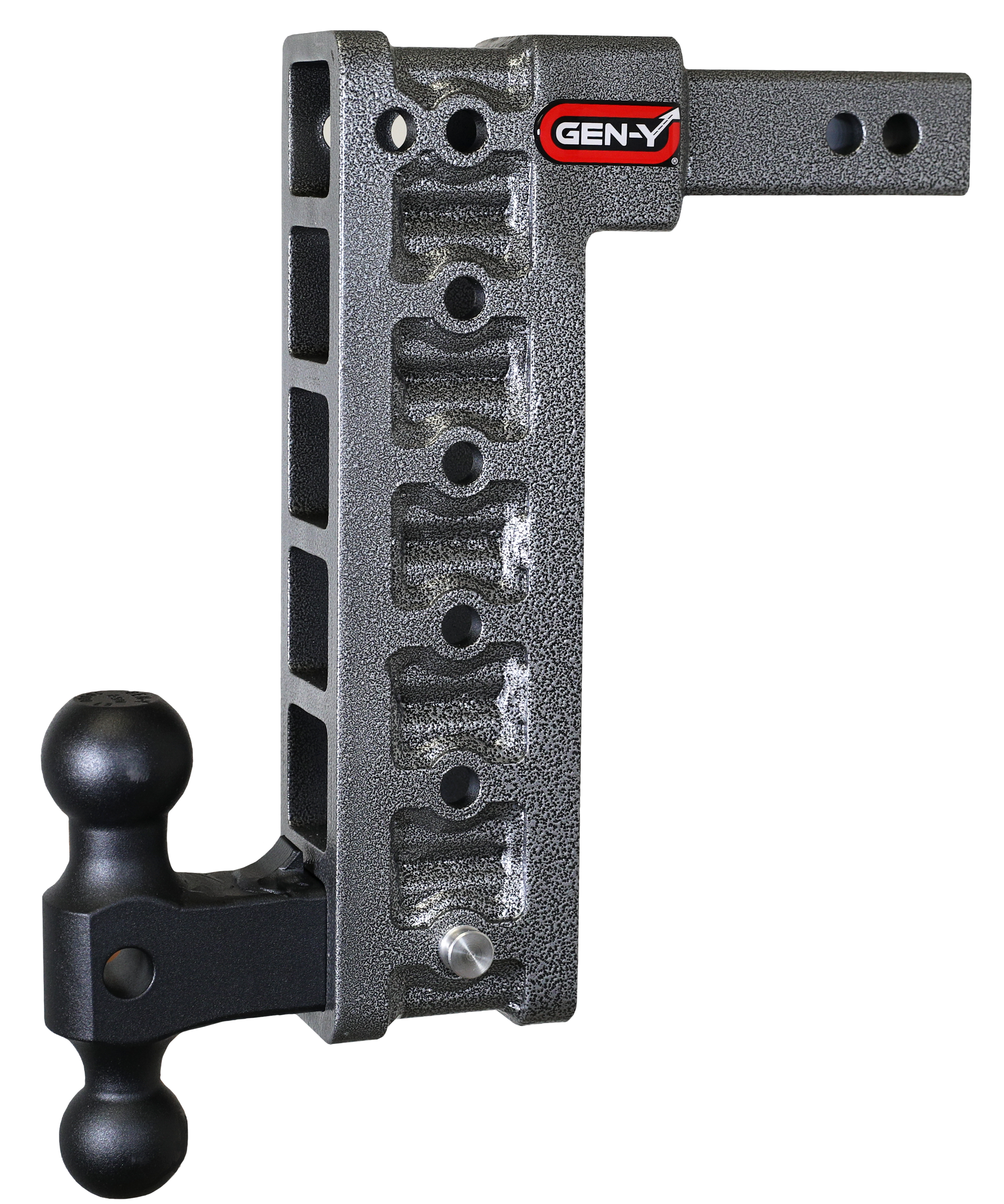 The possibilities are endless with the GEN-Y Mega-Duty adjustable hitch. Not only is our product convenient for customers towing with multiple applications, but also heavy-duty and built to last a lifetime. Our products are designed to improve safety and convenience for customers, ranging anywhere from boaters and off-roaders to serious outdoorsmen. Therefore, the MEGA-DUTY is a great choice for any towing needs. In addition to towing, our product can be used for other applications such as any bicycle rack, motorcycle carrier, cargo rack, etc. Another feature that sets the MEGA-DUTY apart from other hitches is the adjustability. The desired height of the attachment is adjusted by simply removing the pin and moving the ball mount to that position. The hookup is simple and fast and also ensures that the trailer is being towed as level as possible. Our products are designed and tested to be used in the drop or rise position, which provides even more versatility. The GEN-Y Mega-Duty gets the job done faster and can be adapted to almost any bumper style trailer and pintle style couplings. All GEN-Y HITCH products are rigorously tested and exceed the SAE-J684 Weight Testing.