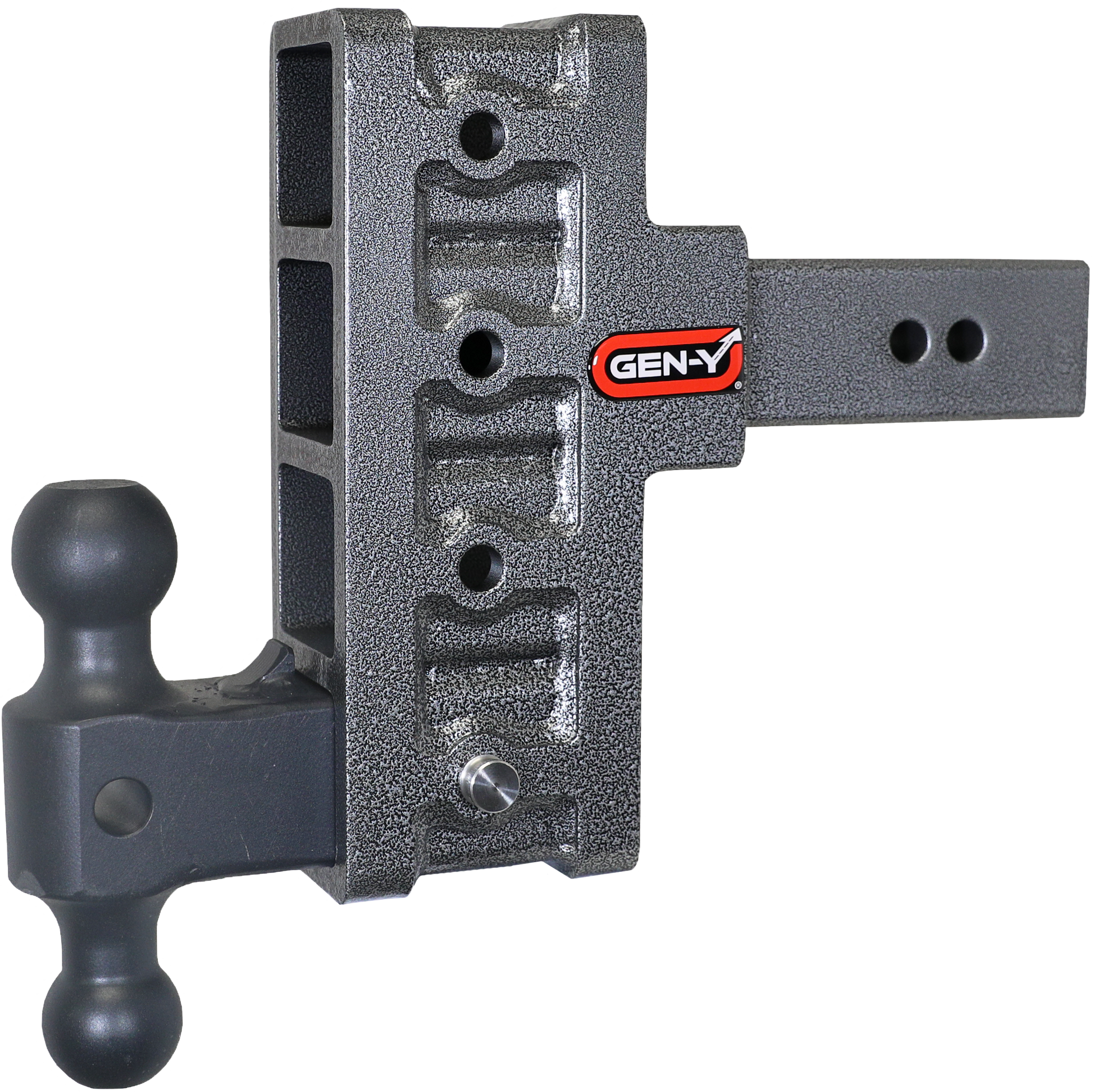 The possibilities are endless with the GEN-Y Mega-Duty adjustable hitch. Not only is our product convenient for customers towing with multiple applications, but also heavy-duty and built to last a lifetime. Our products are designed to improve safety and convenience for customers, ranging anywhere from boaters and off-roaders to serious outdoorsmen. Therefore, the MEGA-DUTY is a great choice for any towing needs. In addition to towing, our product can be used for other applications such as any bicycle rack, motorcycle carrier, cargo rack, etc. Another feature that sets the MEGA-DUTY apart from other hitches is the adjustability. The desired height of the attachment is adjusted by simply removing the pin and moving the ball mount to that position. The hookup is simple and fast and also ensures that the trailer is being towed as level as possible. Our products are designed and tested to be used in the drop or rise position, which provides even more versatility. The GEN-Y Mega-Duty gets the job done faster and can be adapted to almost any bumper style trailer and pintle style couplings. All GEN-Y HITCH products are rigorously tested and exceed the SAE-J684 Weight Testing.