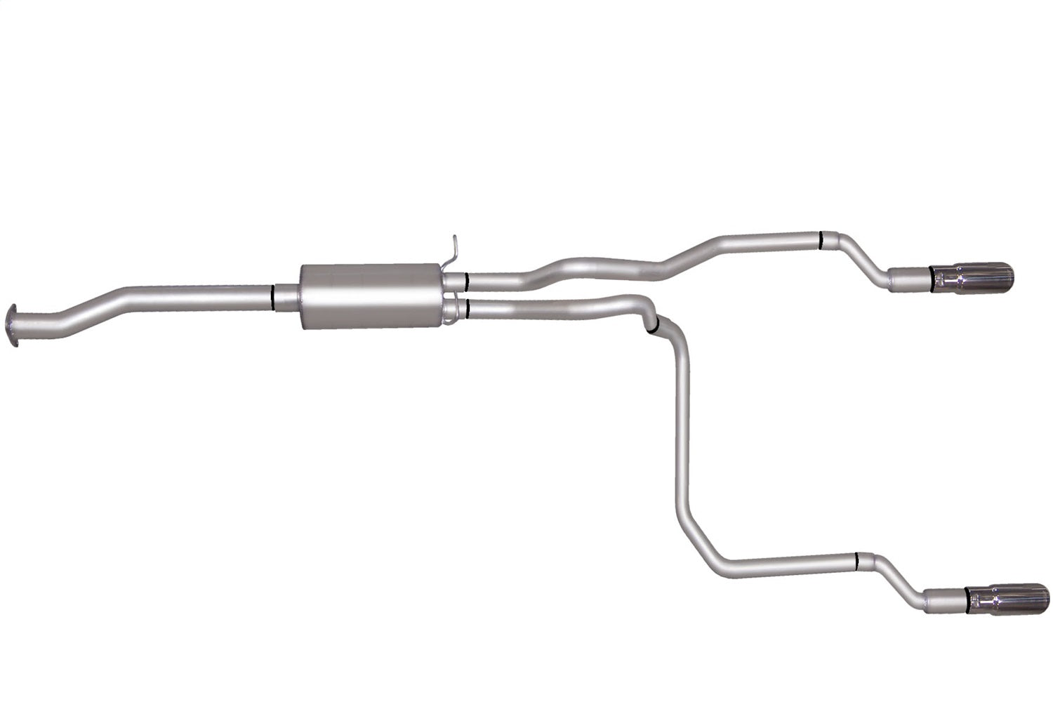 For the enthusiast who wants an awesome look and aggressive throaty sound this Dual Split Cat back exhaust is for you. Gibson Exhaust Systems decrease backpressure and produce more torque and increased horsepower. Typical gains average of 15-20 horsepower. Stainless dual Tip exit straight out the back. Works with most bumpers, roll pans and trailer hitches. Exhaust sound is louder under towing conditions. Hassle Free bolt- on installation. No welding required. Backed by a Lifetime Limited Warranty.