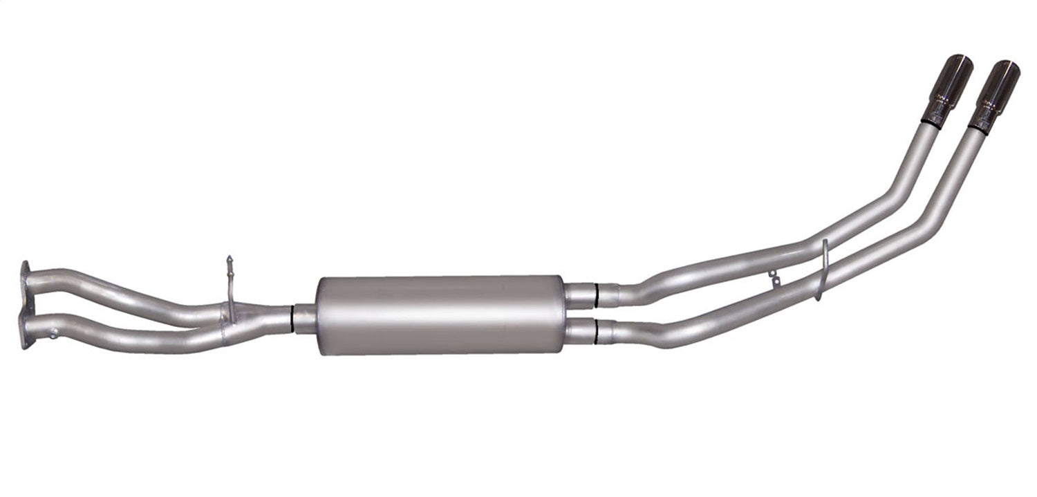 If you're looking to add a little style to your Truck or SUV and want to keep the exhaust from affecting your tow trailer, this Dual Cat back Exhaust System is for you, exiting behind the rear tire for a look that sets your vehicle apart on the street or in the dirt. Hassle free, bolt-on installation with professional looking results. No welding required. Backed by a Lifetime Limited Warranty. Gibson Dual Sport Exhaust System offers a powerful authoritative deep exhaust tone with no annoying noise inside the cab. Dyno tested to assure increased horsepower and produce more torque. Average horsepower gains are 10-15 and 15-20lb-ft of increase torque.