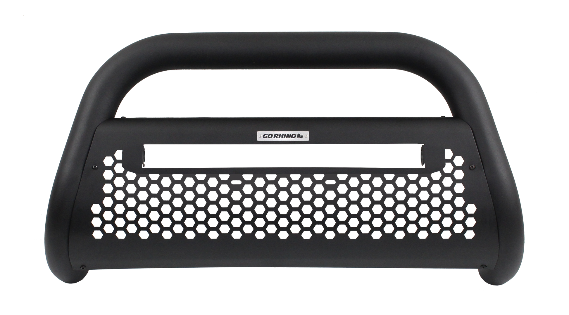 La defensa RC2 LR20 de Go Rhino combina un diseño innovador junto con protección frontal que incorpora un montaje conveniente para una barra de luz LED sencilla de 20". El marco de acero tubular de 3" de diámetro cuenta con una placa protectora de acero galvanizado con un elegante patrón de corte hexagonal que realzan el estilo del vehículo.