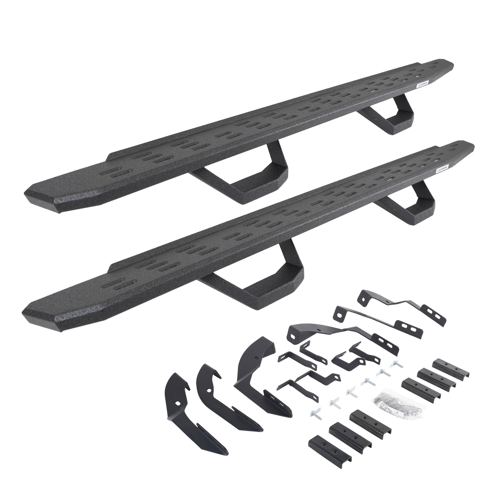 Go Rhino 6960428020T RB30 Running Boards With Mounting Brackets & 2 Pairs Of Drops Steps Kit Protective Bedliner Coating