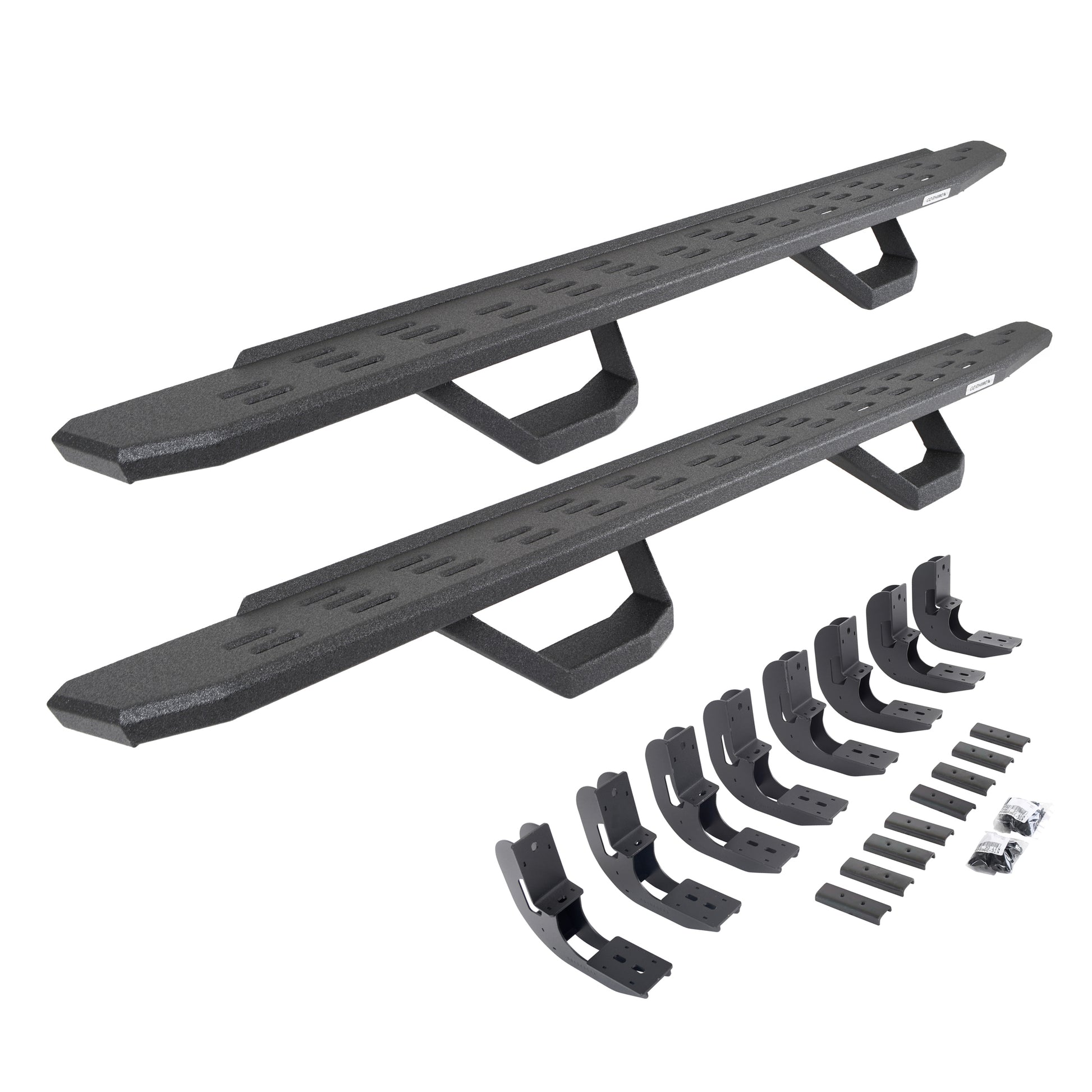 Go Rhino 69604880T RB30 Running Boards With Mounting Brackets & 2 Pairs Of Drop Steps Kit Protective Bedliner Coating