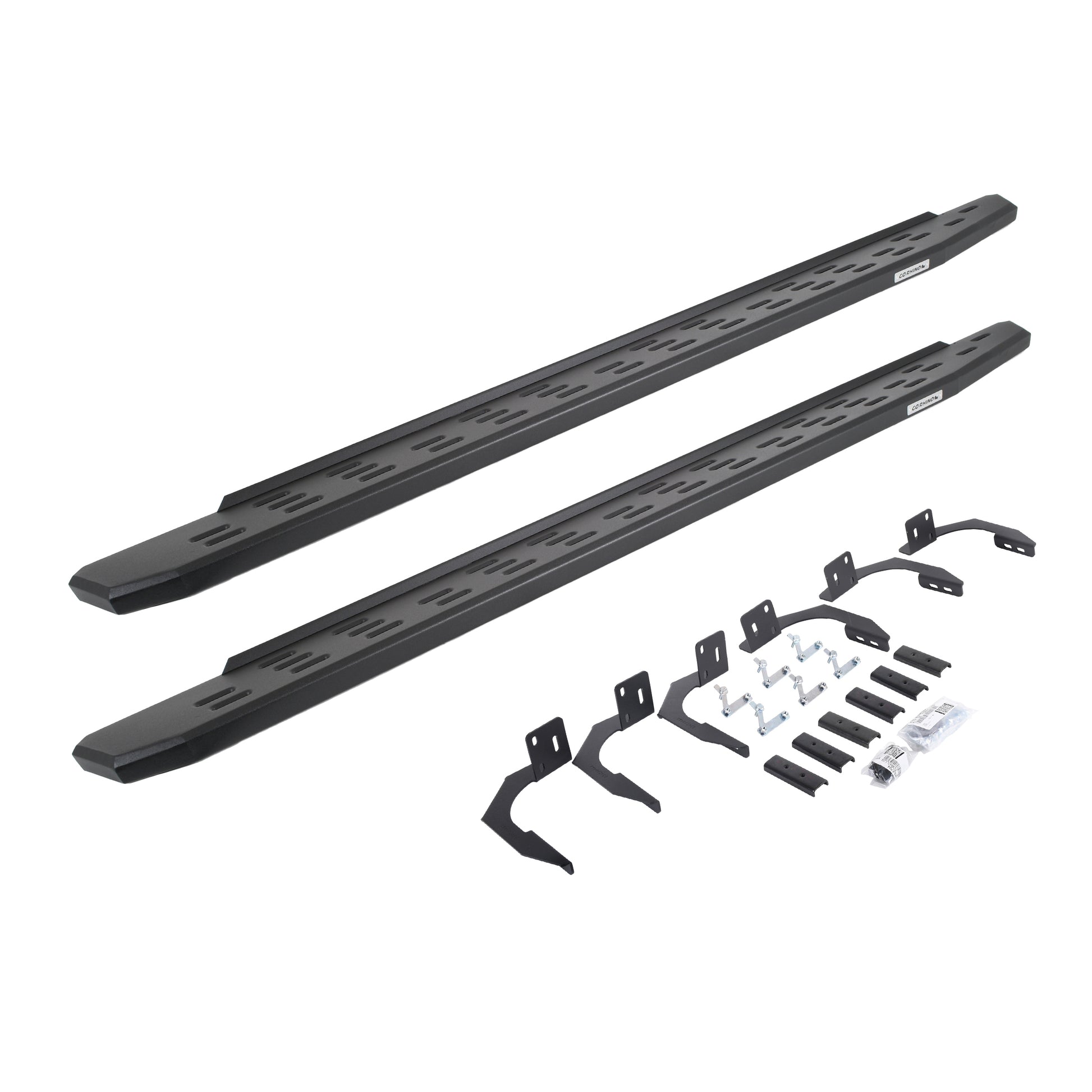 Meet the third edition of the legendary Go Rhino RB Series of running boards: the RB30. The RB30 is the next generation of Raptor-inspired design that will make your truck, Jeep, Bronco or SUV stand out from the crowd. With its aggressive, stylish appearance, this cab-length, bolt-on side step provides maximum traction and features an open flow-through design that prevents mud, ice, and snow from accumulating. The corrosion-resistant 16-gauge steel step mounts tightly to factory mounting points along the lower rocker panel, providing plenty of clearance for off-roading, and it’s strong enough to support 300 lbs. per stepping surface for 600 lbs. per board. The RB30 Running Board is 7” wide for most its length before it tapers (compared to 5” wide for the Slim Line version). All RB Series Running Boards are available in Textured Black Powder Coat or Protective Bedliner finish, made in North America and offer a limited lifetime warranty against manufacturer and material defects, with a 5-year warranty on the finish.