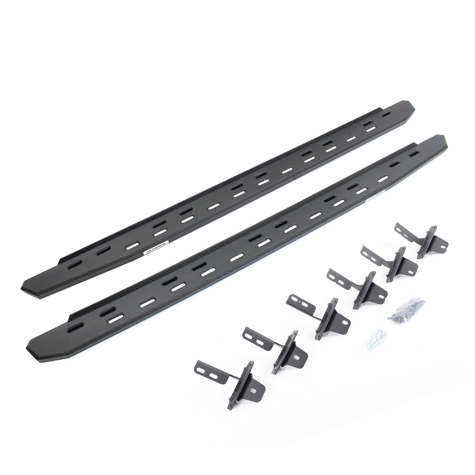 Meet the third edition of the legendary Go Rhino RB Series of running boards: the RB30 Slim Line Running Boards. The RB30 is the next generation of Raptor-inspired design that will make your truck, Jeep, Bronco or SUV stand out from the crowd. With its aggressive, stylish appearance, this cab-length, bolt-on side step provides maximum traction and features an open flow-through design that prevents mud, ice, and snow from accumulating. The RB30 Slim Line Running Board offers the same heavy duty toughness as the original-width RB30, but with a slimmer design that fits tighter along the cab for increased ground clearance when off-roading. The RB30 Slim Line is 5” wide for most its length before it tapers (compared to 7” wide for the original-width). The corrosion-resistant 16-gauge steel step mounts tightly to factory mounting points along the lower rocker panel and it’s strong enough to support 300 lbs. per stepping surface for 600 lbs. per board. All RB Series Running Boards are available in Textured Black Powder Coat or Protective Bedliner finish, made in North America and offer a limited lifetime warranty against manufacturer and material defects, with a 5-year warranty on the finish.