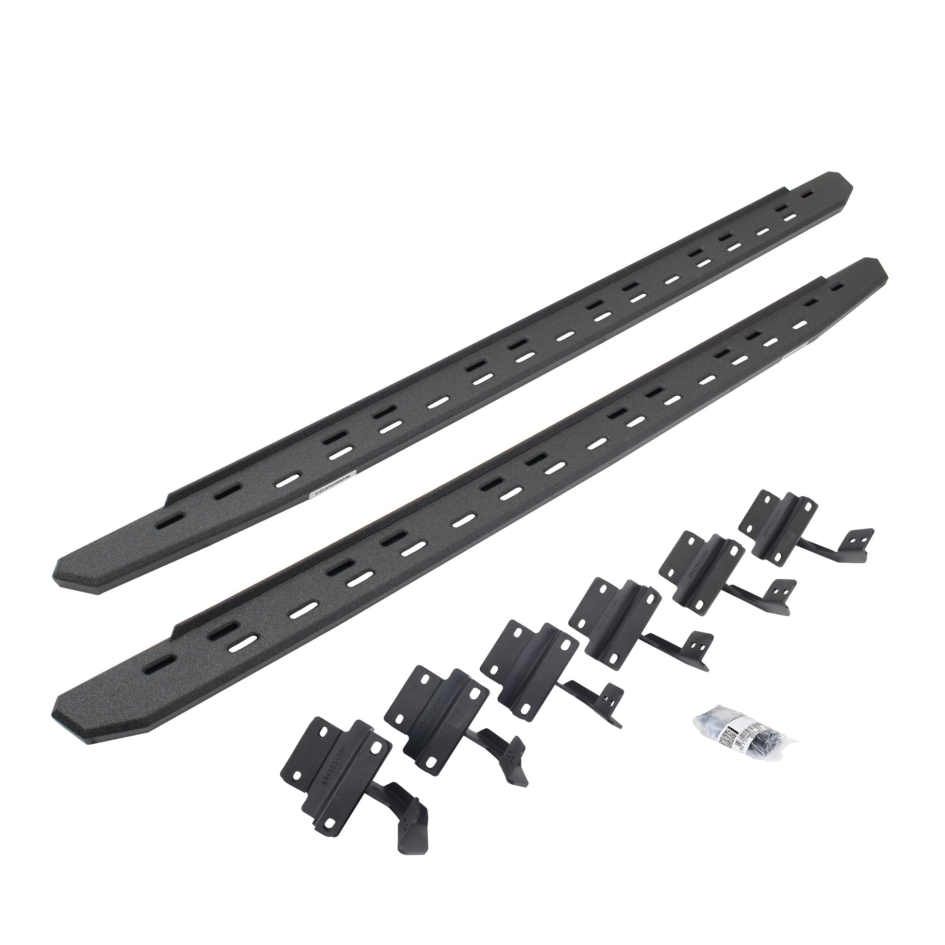 Meet the third edition of the legendary Go Rhino RB Series of running boards: the RB30 Slim Line Running Boards. The RB30 is the next generation of Raptor-inspired design that will make your truck, Jeep, Bronco or SUV stand out from the crowd. With its aggressive, stylish appearance, this cab-length, bolt-on side step provides maximum traction and features an open flow-through design that prevents mud, ice, and snow from accumulating. The RB30 Slim Line Running Board offers the same heavy duty toughness as the original-width RB30, but with a slimmer design that fits tighter along the cab for increased ground clearance when off-roading. The RB30 Slim Line is 5” wide for most its length before it tapers (compared to 7” wide for the original-width). The corrosion-resistant 16-gauge steel step mounts tightly to factory mounting points along the lower rocker panel and it’s strong enough to support 300 lbs. per stepping surface for 600 lbs. per board. All RB Series Running Boards are available in Textured Black Powder Coat or Protective Bedliner finish, made in North America and offer a limited lifetime warranty against manufacturer and material defects, with a 5-year warranty on the finish.