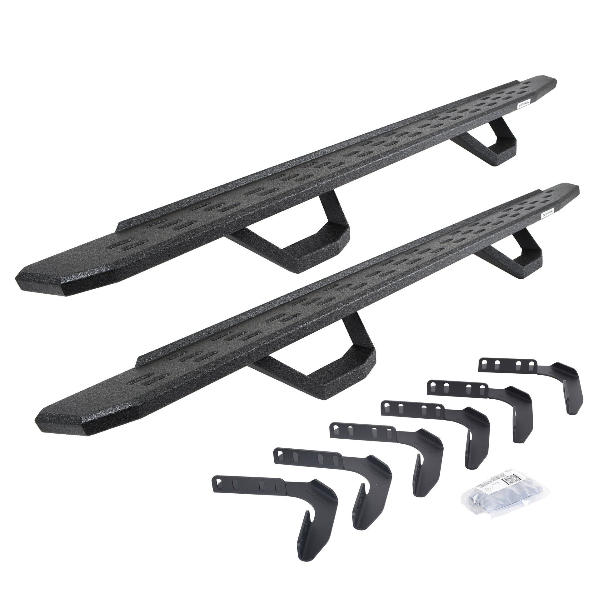Go Rhino 6961808720T RB30 Running Boards With Mounting Brackets & 2 Pairs Of Drops Steps Kit Protective Bedliner Coating