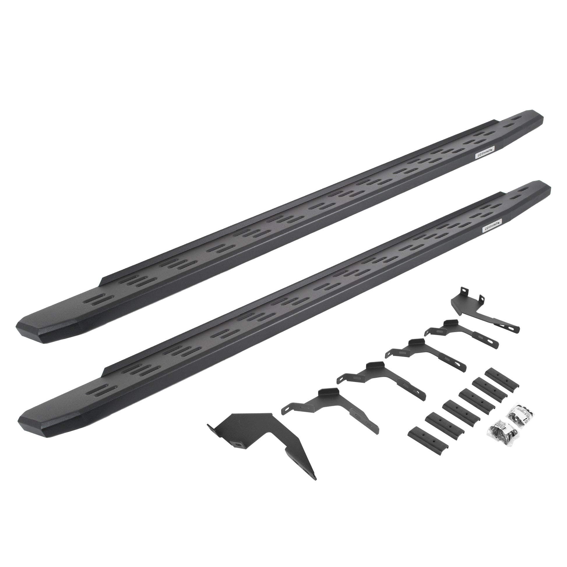 Meet the third edition of the legendary Go Rhino RB Series of running boards: the RB30. The RB30 is the next generation of Raptor-inspired design that will make your truck, Jeep, Bronco or SUV stand out from the crowd. With its aggressive, stylish appearance, this cab-length, bolt-on side step provides maximum traction and features an open flow-through design that prevents mud, ice, and snow from accumulating. The corrosion-resistant 16-gauge steel step mounts tightly to factory mounting points along the lower rocker panel, providing plenty of clearance for off-roading, and it’s strong enough to support 300 lbs. per stepping surface for 600 lbs. per board. The RB30 Running Board is 7” wide for most its length before it tapers (compared to 5” wide for the Slim Line version). All RB Series Running Boards are available in Textured Black Powder Coat or Protective Bedliner finish, made in North America and offer a limited lifetime warranty against manufacturer and material defects, with a 5-year warranty on the finish.
