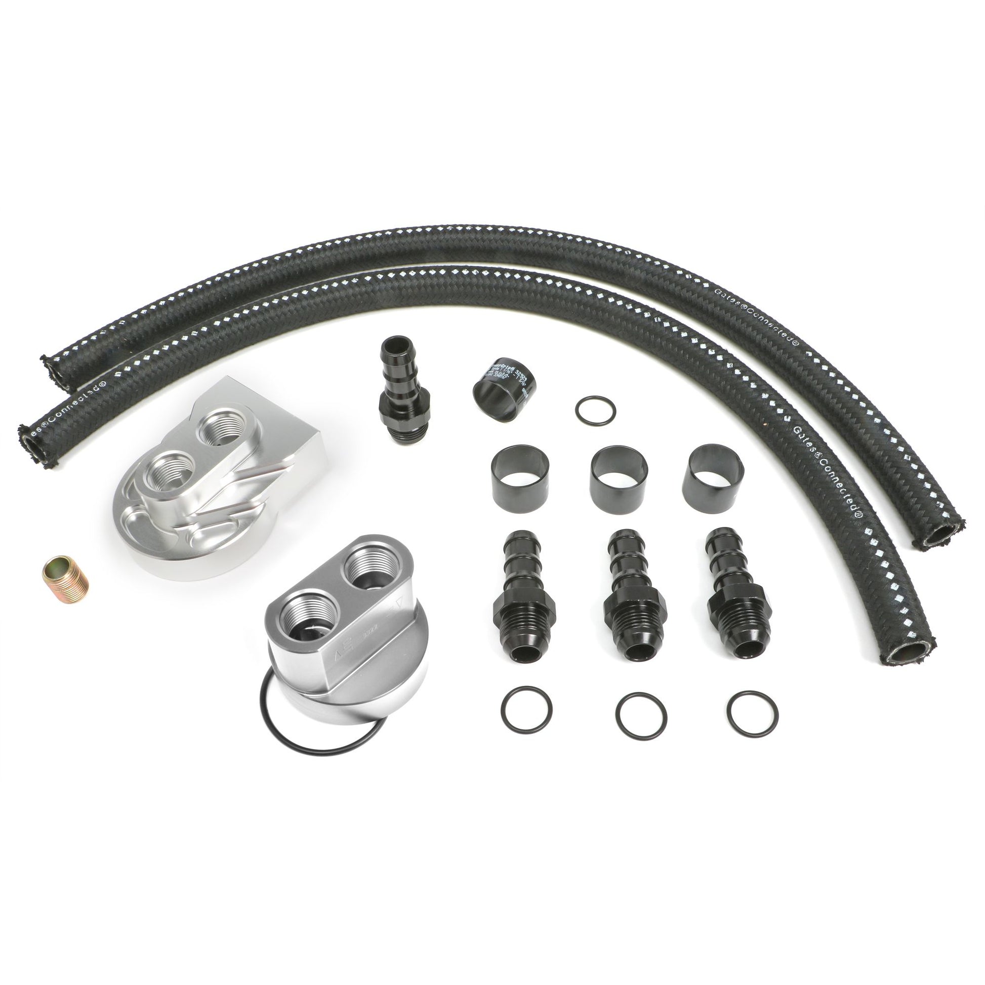 - Kit Includes Filter Bypass Adapter, Remote Filter Base, Braided Oil Lines, Aluminum Fittings and Reinforcing Ferrules