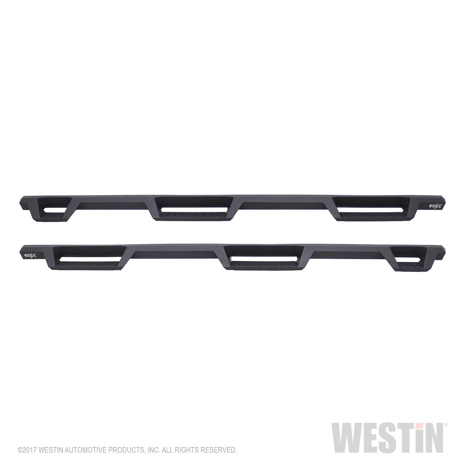 Westins HDX Drop Wheel-to-Wheel Nerf Step Bars feature a notched bar design with a 3rd step location for easy bed access. They provide strong traction with over 2 inches more of toe/heel step area than our Westin's HDX Drop W2W Nerf Step Bars include an added 3rd step location for easier bed area and cargo access. HDX also boasts more than 2 inches of added toe/heel step area which far exceeds all other competitive brands. HDX's notched bar design construction results in a reliable long lasting Bar, with a solid fit and a rugged look. The added length of HDX Drop Wheel-to-wheel Nerf Step Bars provides users with better cab access and better footing and traction for both drivers and passengers. Product includes mount kit and is offered in a variety of vehicle specific applications. Bolt-on installation so no drilling required. Mount kit included. Westin's exclusive Isolator Bracket supports the step bar past the truck cab, a feature that competitors do not offer. Without an Isolator Bracket, the step area that extends past the vehicle is left unsupported. Our unique design provides extra bed support without resulting in annoying creaking sounds.