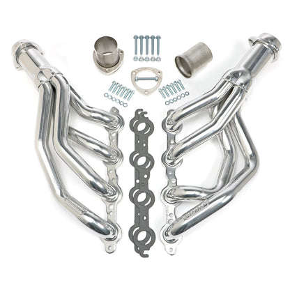 Hedman Hedders has been manufacturing quality headers in the USA since 1954, and they've been manufacturing long and mid-length tube headers for GM F-Body and Nova models for decades, so designing a good fitting, great performing set of headers for the popular LS engine swap. Each set uses smooth flowing, CNC mandrel bent tubes, that are hand-welded to ensure each pair is identical to the next. The stout 3/8" header flanges ensure a great seal that will resist warping, and Hedman's unique, gasketless ball and socket collector design allows your Camaro, Firebird, Nova or Ventura's exhaust system to bolt up, even if it is not perfectly aligned with the header collectors. Hedman is so confident in the quality of its headers that these headers are factory backed by a Limited Lifetime Warranty.