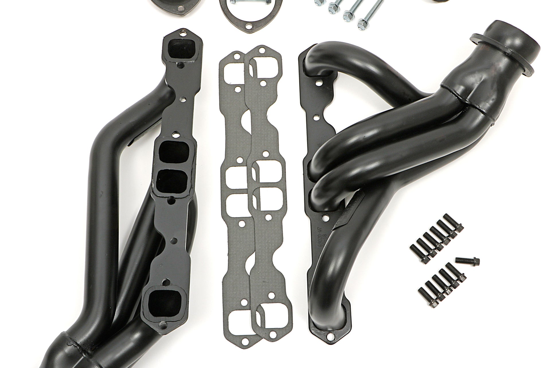 - Product Details: The short, compact design of these headers allows truck builder to raise the exhaust system higher for maximum ground clearance. This set is uncoated. For the added protection of HTC coating, please refer to part number 69026.