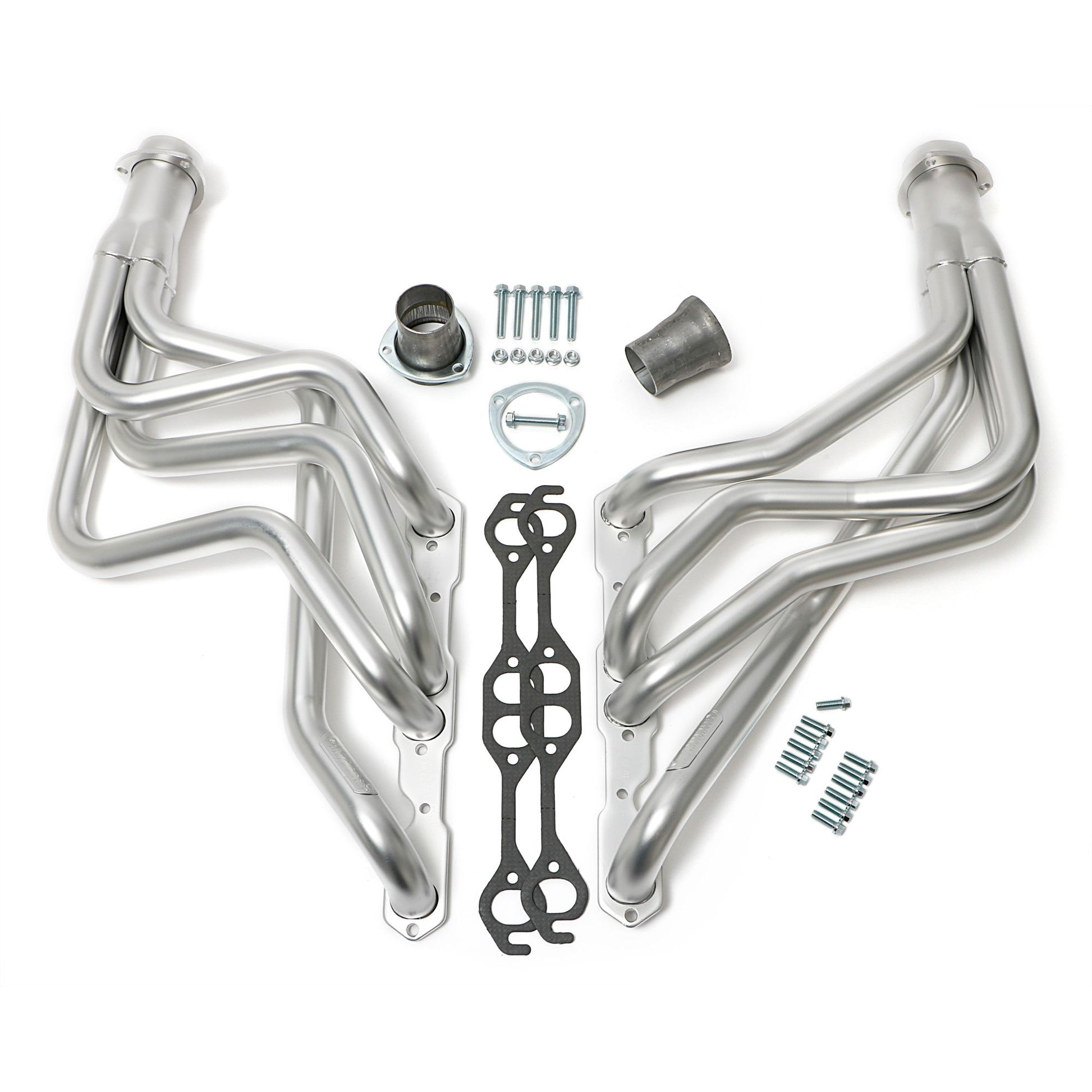 - Contents: Header(s), new bolts, gasket(s) to head, reducer(s) and hardware, instructions