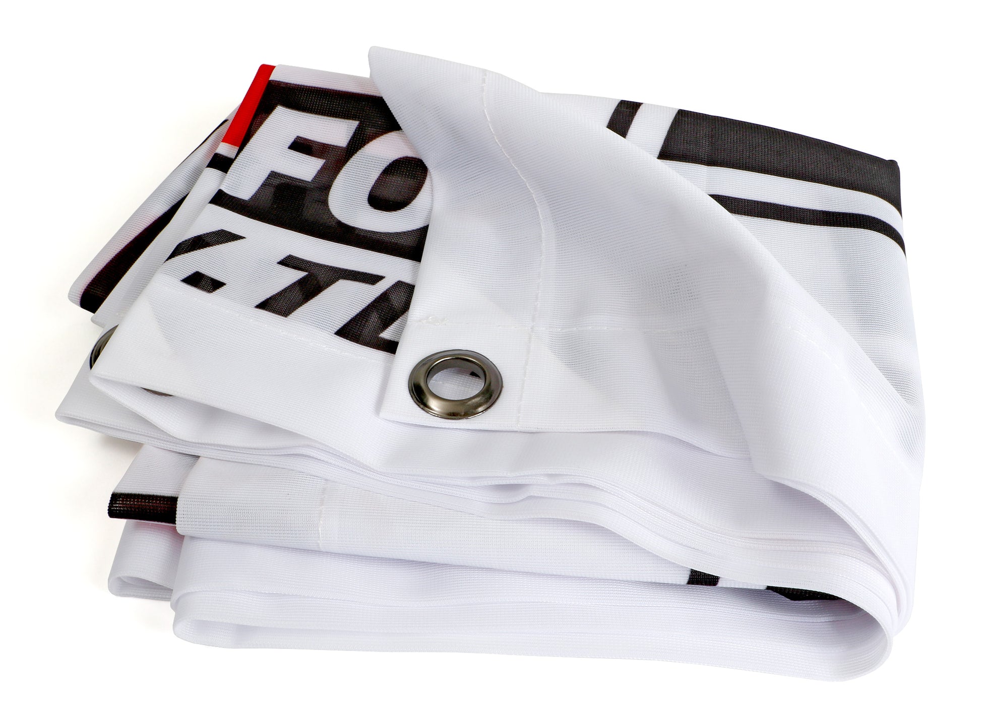 - Materials: Hemmed Polyester fabric with 6 Black metal grommets