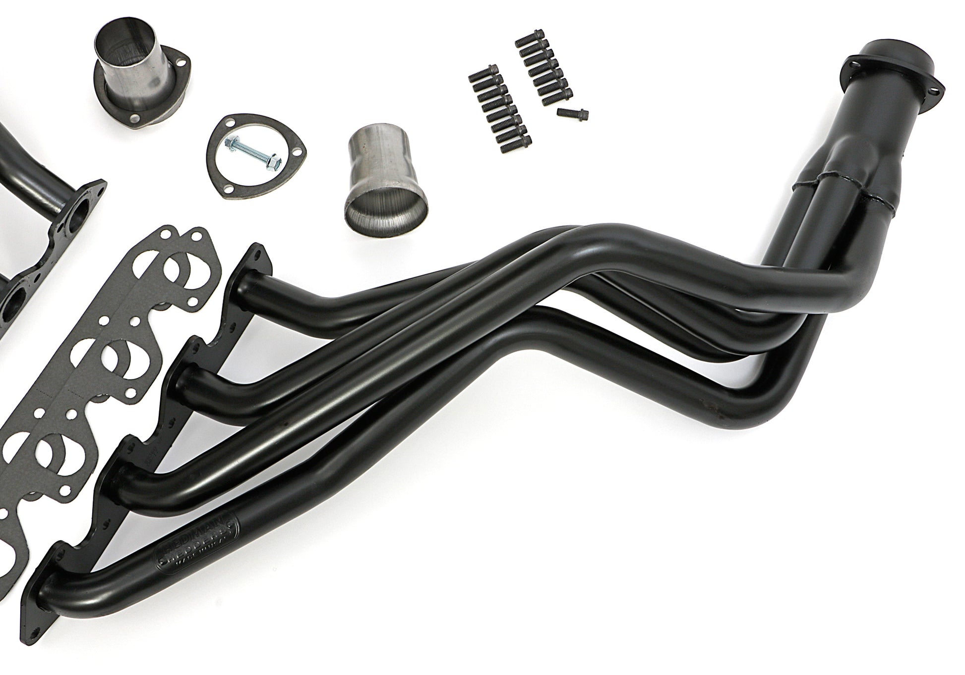 - Contents: headers, gaskets (when applicable), 3-bolt exhaust adapters, hardware
