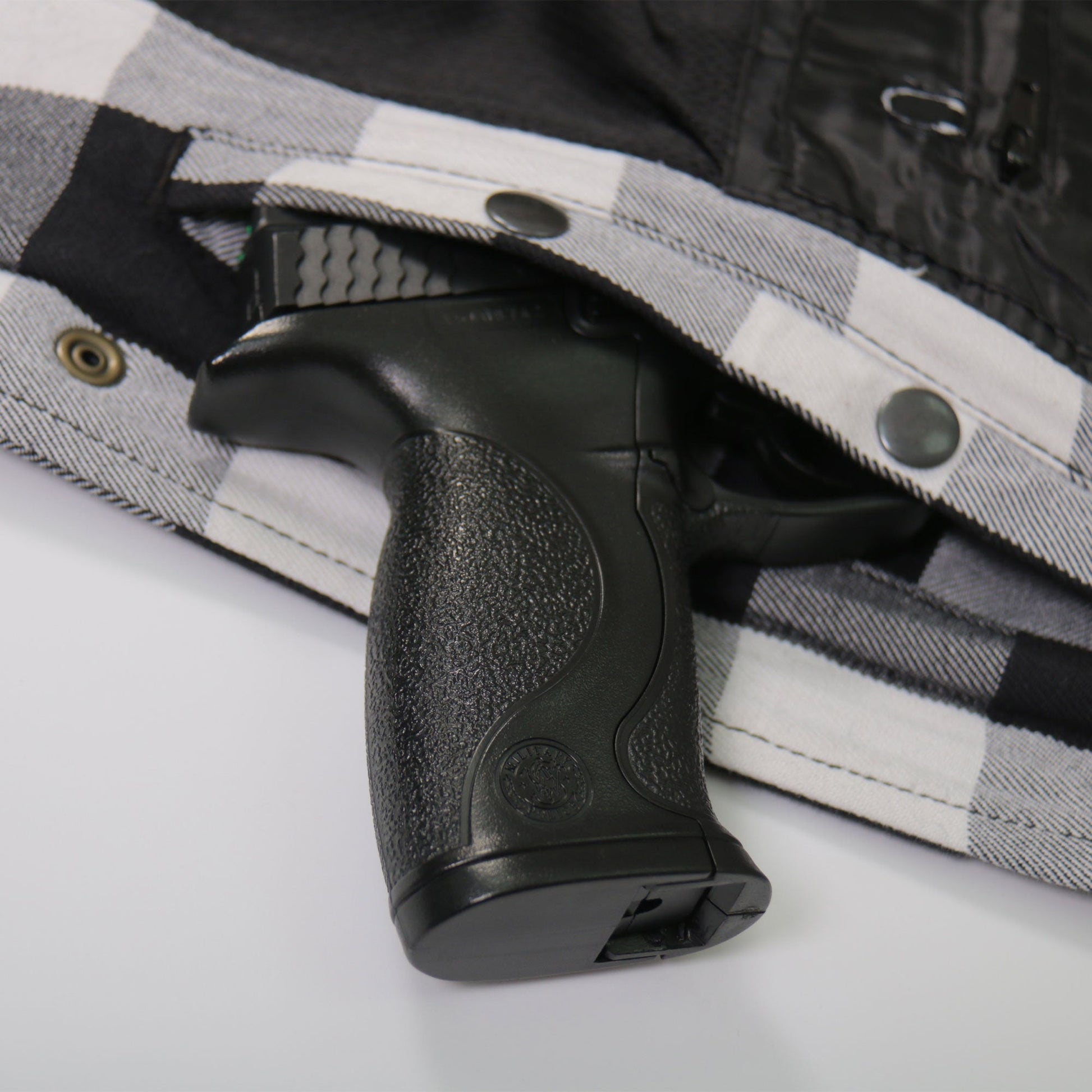 Hot Leathers JKM3006 Men’s Motorcycle Black and White Hooded Armored Flannel Biker Jacket