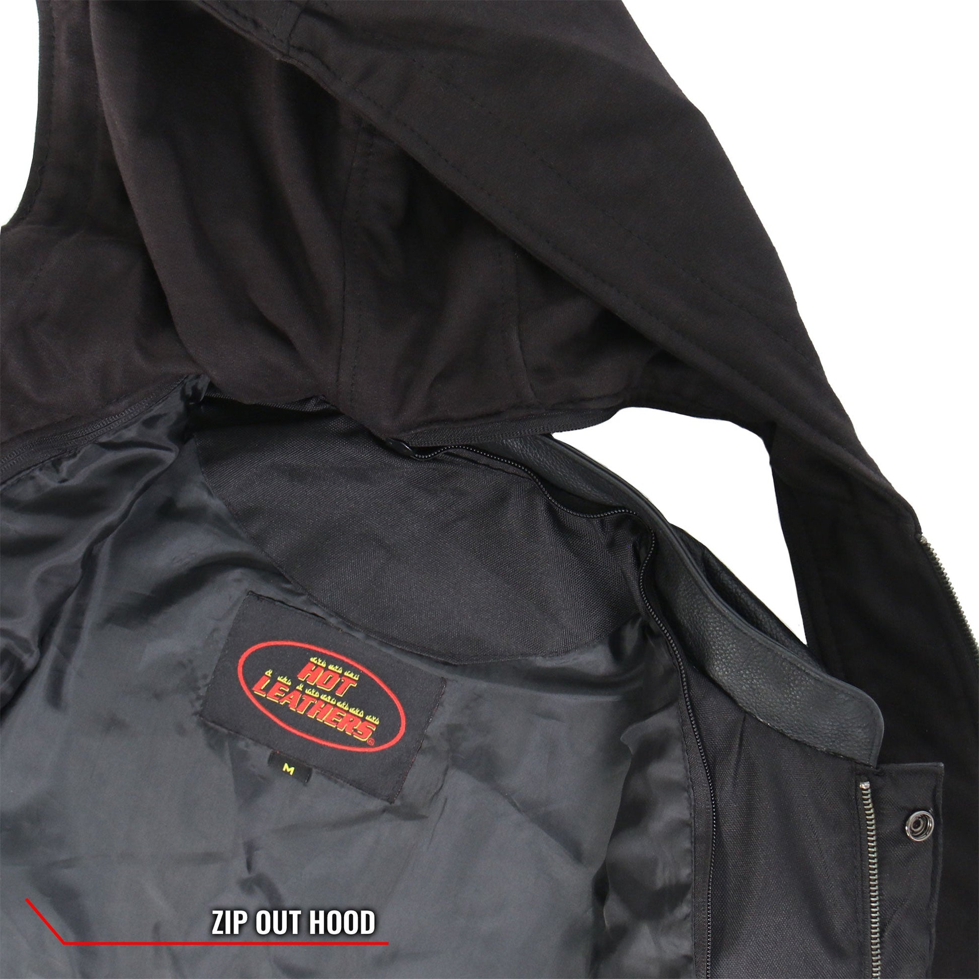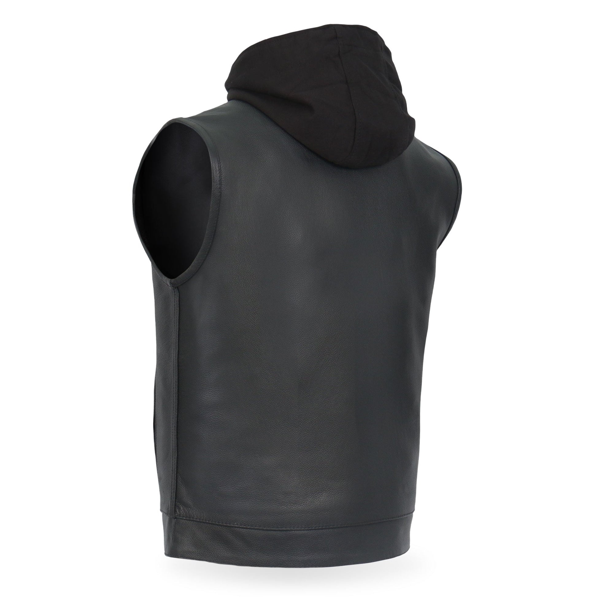 Hot Leathers Leather Motorcycle Biker Club Vest with Hood