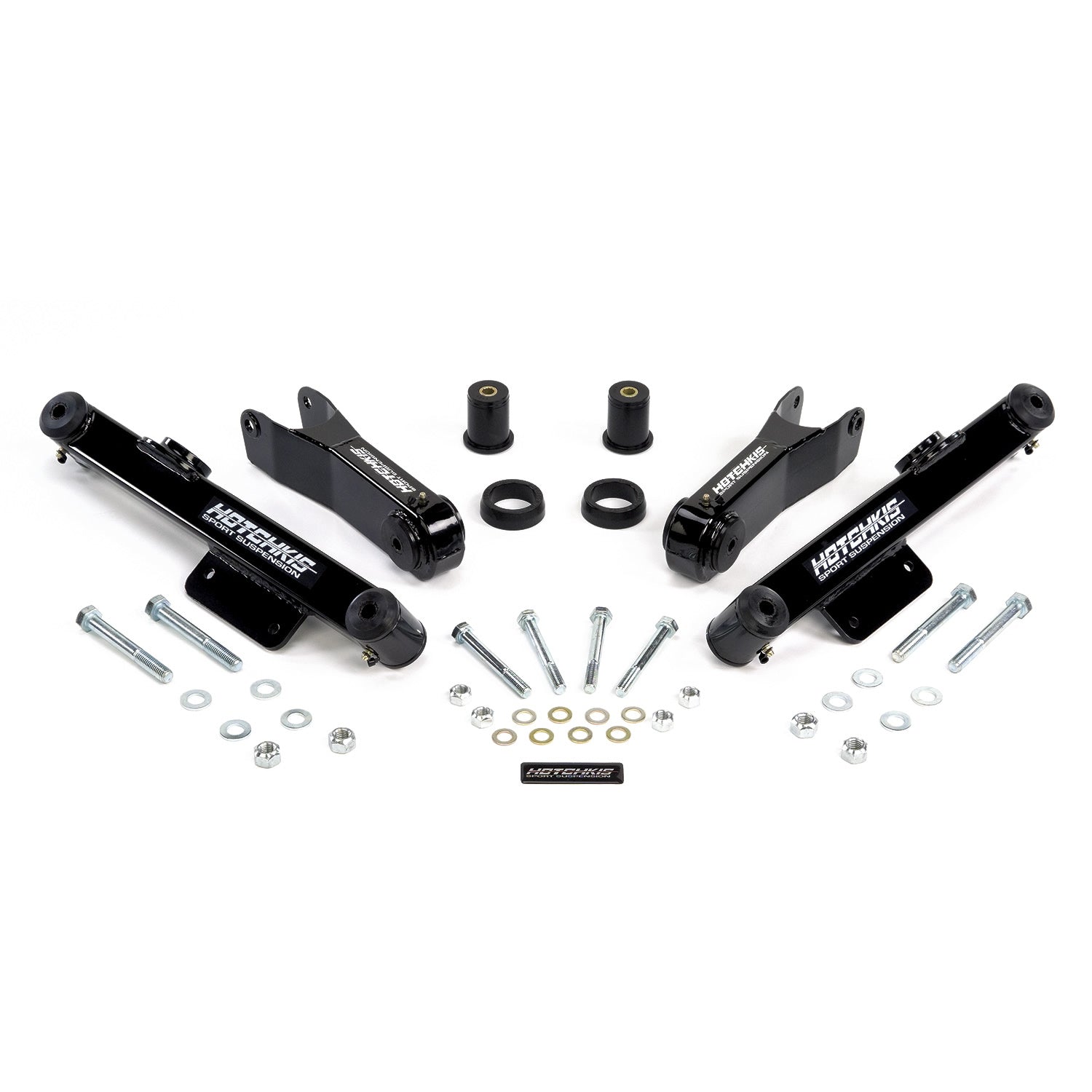 Hotchkis Sport Suspension 1815 1999-2004 Mustang Rear Suspension Package. Our upper and lower trailing arms for your 99-2004 Mustang work together to positively locate and control the rear axle. Launches are quicker smoother and more consistent by eliminating wheel hop. Cornering and overall stability are dramatically improved through increased roll stiffness and sway bar effectiveness. The fabricated trailing arms are constructed from high quality TIG-welded .120 in. wall steel tubing. They feature our exclusive billet CNC machined spring perch and are fitted with special fluted polyurethane bushings. Grade 8 Hardware is included with suspension packages.