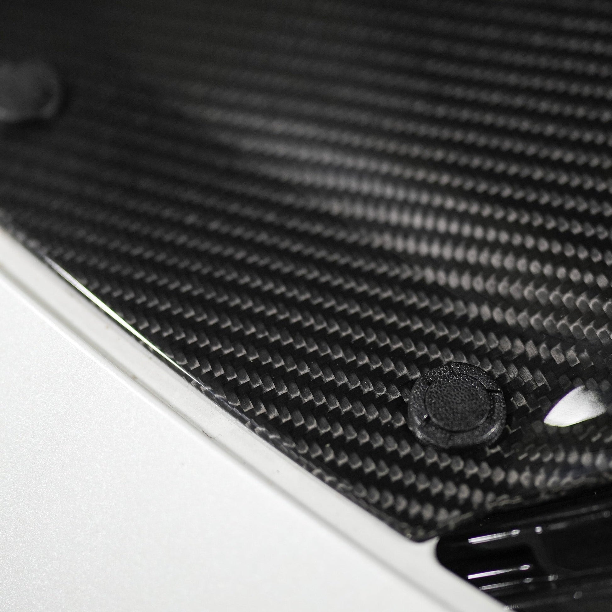 Carbon Fiber Construction: Crafted from premium carbon fiber materials, this radiator shroud not only adds a touch of sophistication to your engine bay but also offers lightweight durability. Enjoy improved aesthetics without compromising on strength.
