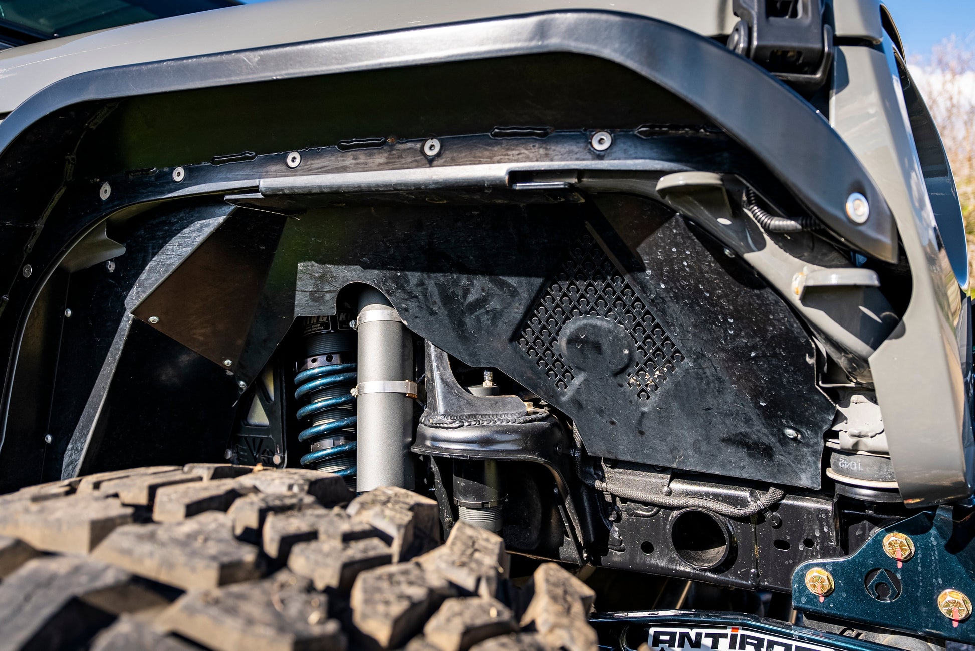 Artec Industries is excited to announce our new Front Inner Fenders for JL and JT Gladiators. These aluminum fenders not only protect your engine compartment from dirt and debris but do it in style. Our proprietary process of stamping our logo not only adds an additional element of style not seen in the industry but also increases the rigidity of the whole inner fender. In addition, the laser cut vents keep your engine compartment cool and don't require you to bolt on an extra piece of mesh material. All this at a PHENOMENAL PRICE and manufactured in-house which means its MADE IN THE USA!