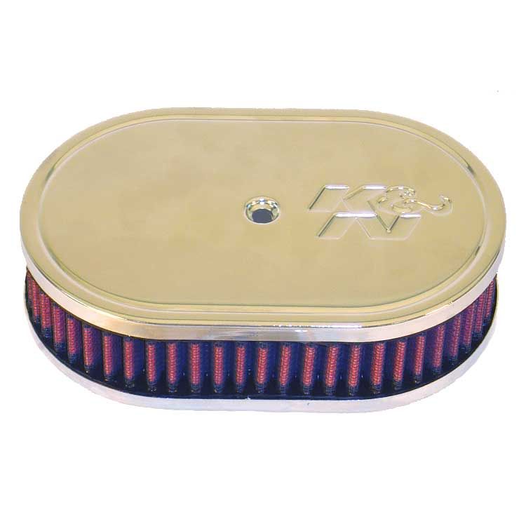 K&N Custom Air Filters for Single or Two Barrel Carburetors - K&N custom air filter kits are designed to boost performance from your carburetor while keeping the dirt on the outside where it belongs. These assemblies come with custom chrome top and base plates and the famous K&N High-Flow Washable Air Filter.