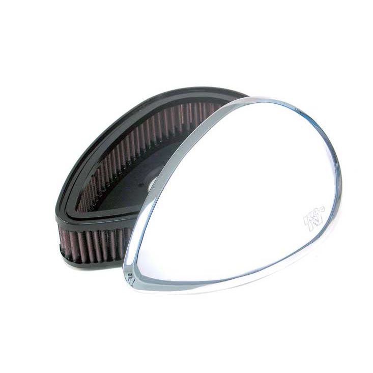 K&N air cleaner assemblies, designed for your Harley-Davidson, are a remarkable combination of performance and style. These air cleaner assemblies are made to increase horsepower and torque by supplying superior air flow. They are machined from billet aluminum, luster polished, then chrome plated to complement your show bike. This K&N custom air cleaner fits select Dyna, Softail, and Touring models. Each K&N air cleaner comes complete and ready to use including, a mounting bracket kit. There's nothing else to buy. Installation is easy, so exceptional performance is only a few steps away with a K&N custom air cleaner. Not only that, but these parts are designed for optimal looks. This unique custom teardrop-shaped cover will give your Harley the sleek, aggressive appearance you've been looking for.
