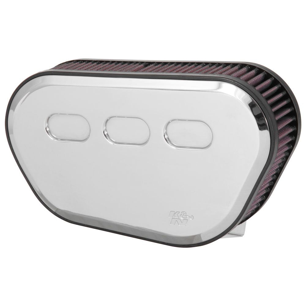 K&N's Street Metal Series High-Flow Air Intake Systems provide a good looking appearance, offer increased airflow and deliver more horsepower & torque to your Harley-Davidson motorcycle. These intake systems increase power by eliminating the stock OE air cleaner and replacing it with a complete high-flow air intake system. The sturdy, custom aluminum backing plate mounts directly to the throttle body via an aluminum integrated, internal-run breather system. At the heart of this system is K&N's Air Filter which offers increased air flow, long service intervals, and is pre-oiled ready to be installed. The chrome custom cover plate gives this air intake good looks while powering down the highway or at your local show.