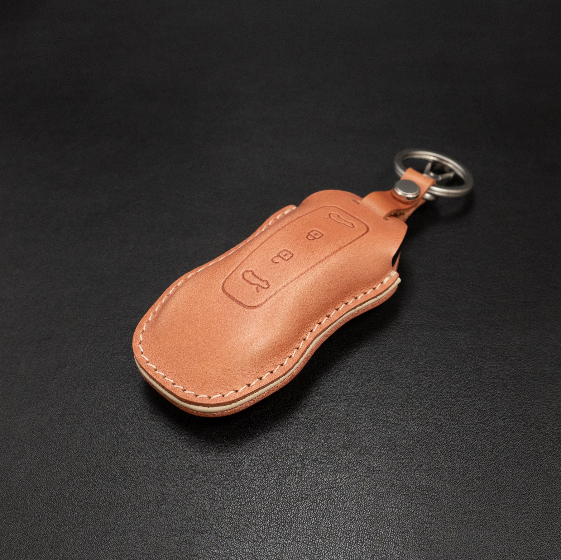 Designed specifically for a Porsche key, this cover is made from premium Italian vegetable-tanned leather, known for its durability and beautiful aging process.