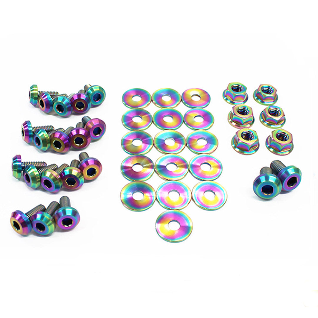 Dress Up Bolts fasteners (bolts, nuts, and washers) are professional race-grade hardware with show car style. Made from 6AL-4V Grade 5 Titanium, they provide exceptional high tensile strength, are corrosion resistant, all while being ultra-lightweight.