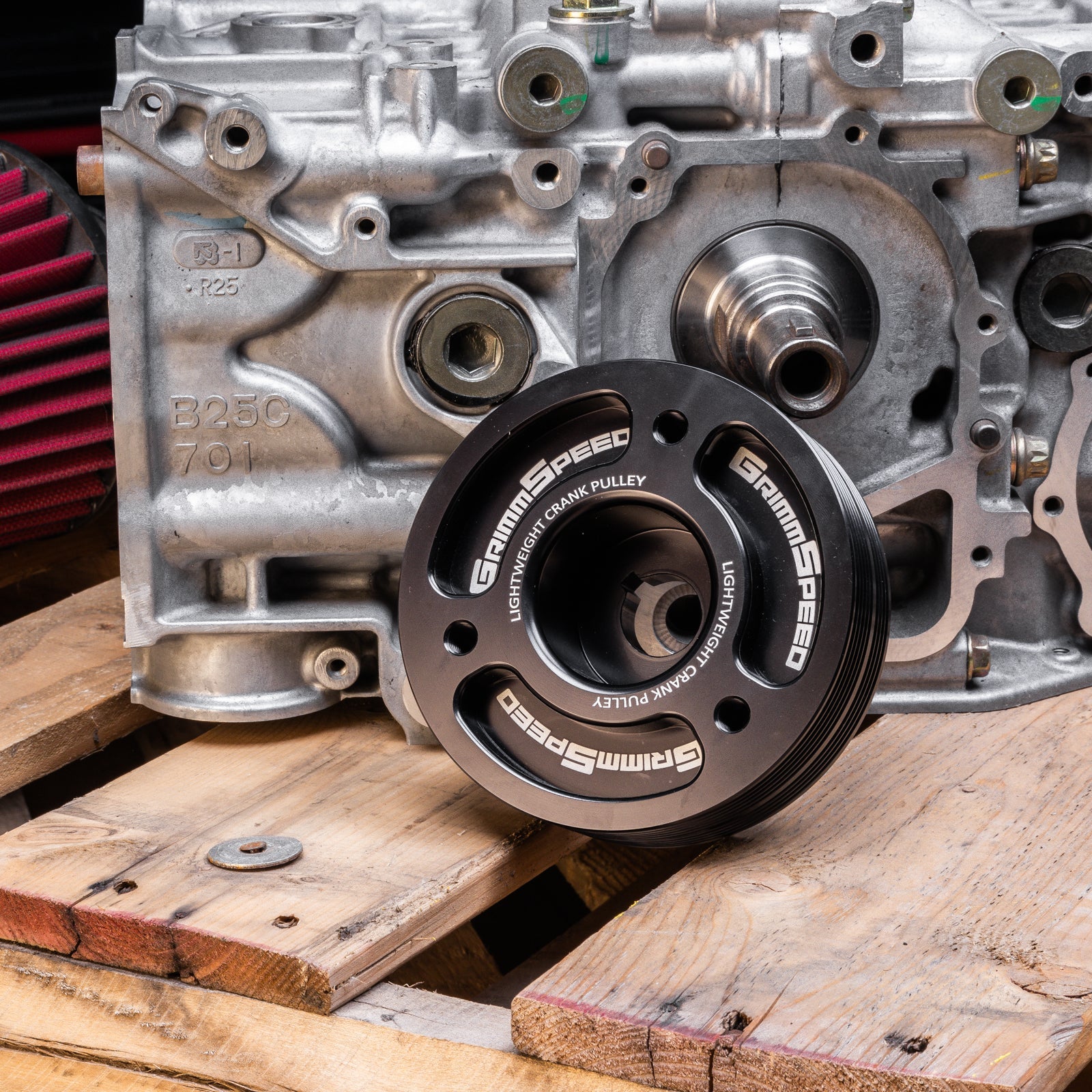 In our opinion, the OEM Subaru crank pulley has been a cause for concern ever since its original design. It is relatively heavy, susceptible to catastrophic failure, and quite unsightly. Continuing to use this on our cars just wouldn't do. Eliminating rotational mass while maintaining a safe presence can increase reliability and bring faster Rev's! For our Lightweight Crank Pulley we pulled out all of the stops. CNC machined from 6061 T6 Aluminum our pulley makes no compromise. It weighs in at 3.5lbs lighter than OEM while at the same time increasing its durability. Marked with a timing mark and perfect cut keyway makes this install a breeze. We designed the pulley with the optimum weight for performance while avoiding misfire CEL's and engine hesitation.