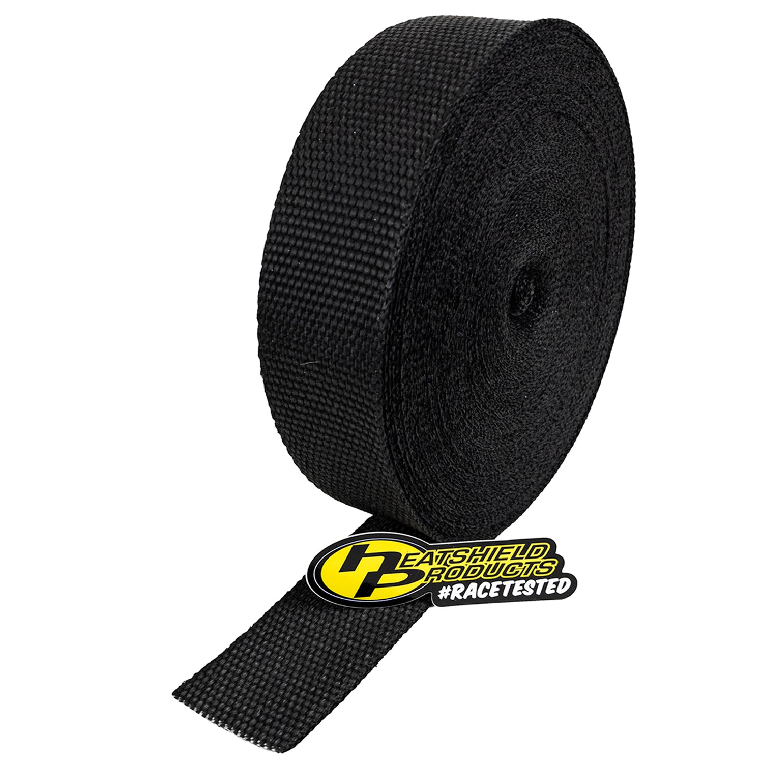 Black exhaust wrap maintains hotter exhaust and header gases, decreases the density, and that allows the exhaust gas to exit the system faster! Increased exhaust scavenging is produced, this pulls the intake gases through the cycle faster, helping to lower intake temperatures: that equals more horsepower. Our black exhaust wrap also reduces radiant heat damage and can lower under hood temperatures by as much as 5%. This exhaust wrap features a proprietary black coating, it holds its color longer than similar graphite coated wraps. It can withstand 12F continuous and 2F intermittent. Coil the black wrap around your exhaust pipe, using overlap to hold itself in place (like a hockey stick or tennis racket grip) use our Thermal-Tie, hose clamps, or wire to secure ends in place. Our black exhaust wrap is asbestos free and is made from a base high quality fiberglass yarn. It is noncombustible, it is also water and fungus resistant. Always wear gloves, safety glasses and dust mask wearing long sleeves are also recommended when handling this product.