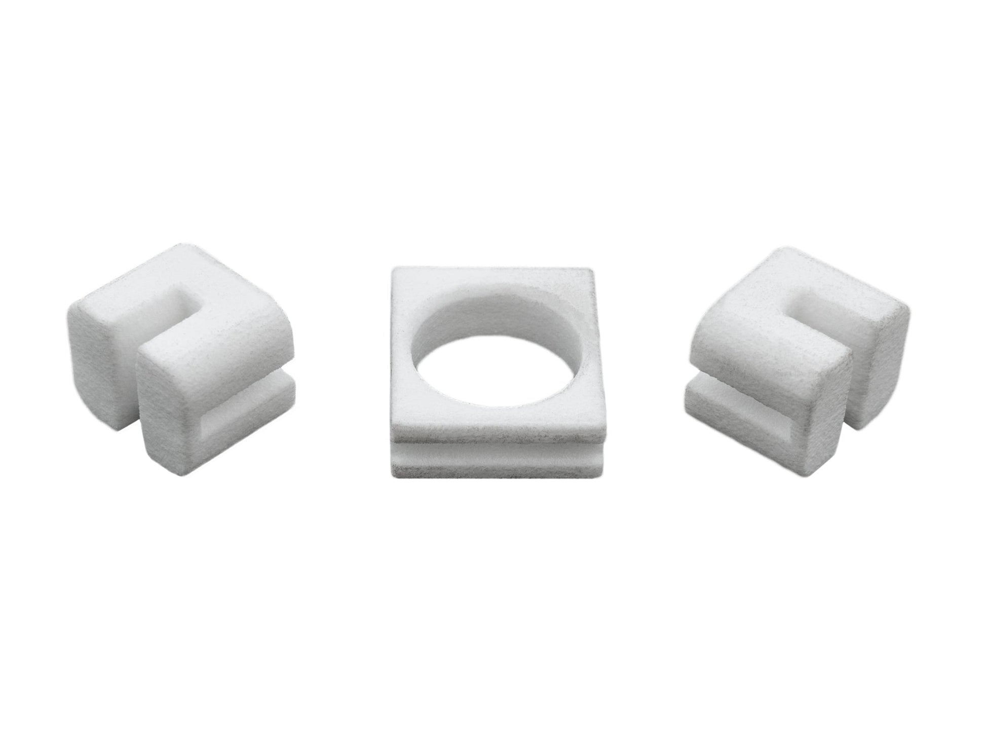 The original plastic guides in your manual window regulators often wear out and fall apart, rendering the window action sloppy at best, and inoperable at worst. These replacement parts are a faithful reproduction of all three of the regulator guide components.