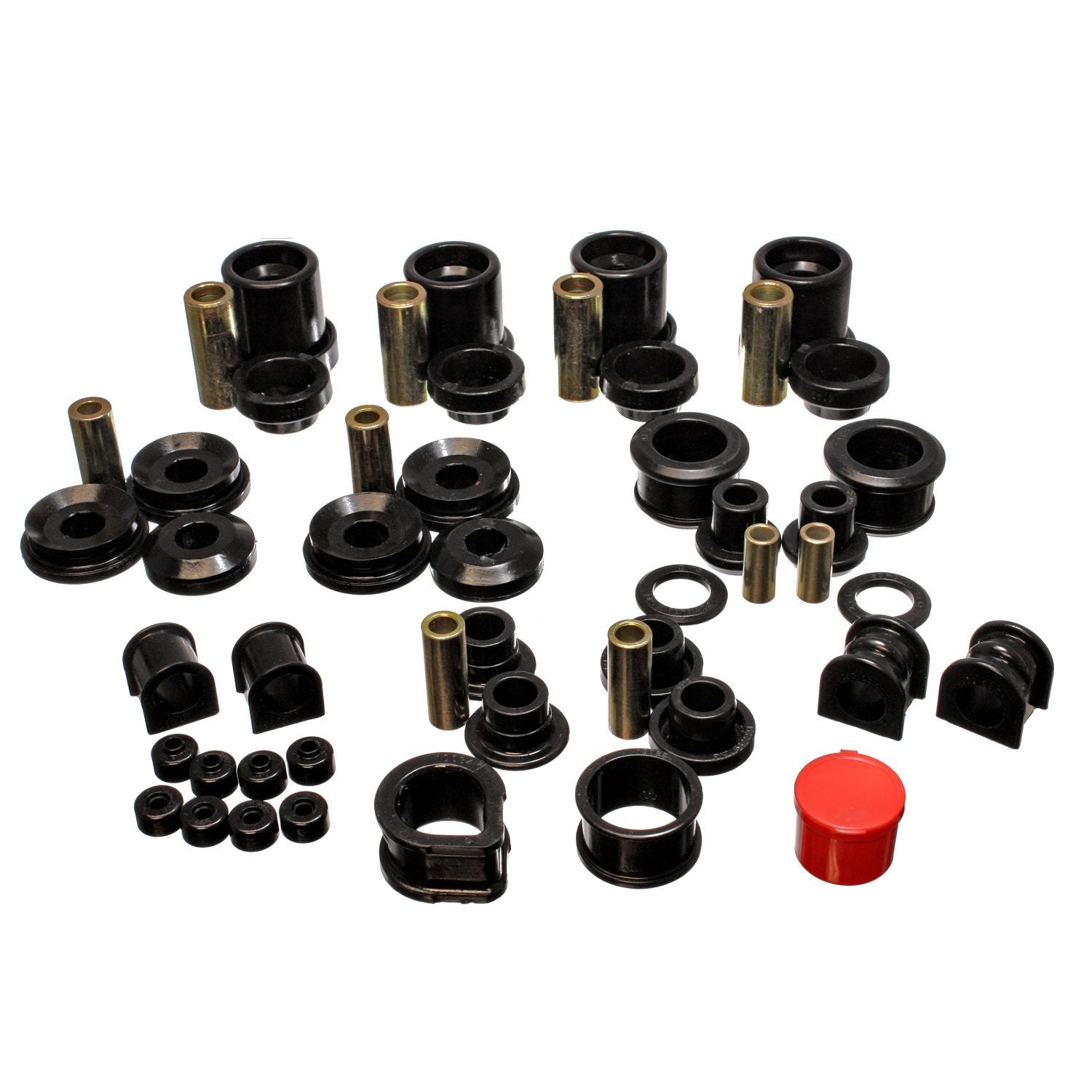 Energy's Hyper-Flex(TM) is superior performance polyurethane which has proven itself under the most demanding conditions on the race track, off-road and street performance driving, Hyper-Flex(TM) components do not wear or deteriorate from exposure to undercar chemicals such as oils and coolants and withstand atmospheric conditions like UV exposure and pollutants. Impervious to these elements, Energy's Hyper-Flex(TM) components are a great value. Not only will it outlast rubber 5 to 1 but are a cost effective performance improvement for your car or truck. Whether domestic or import, front, rear or 4WD, old or new, your vehicle will achieve that level of performance that has made Energy Suspension the most asked-for name in performance polyurethane components. All Hyper-Flex(TM) components are proudly Made in America and are available in red or black.