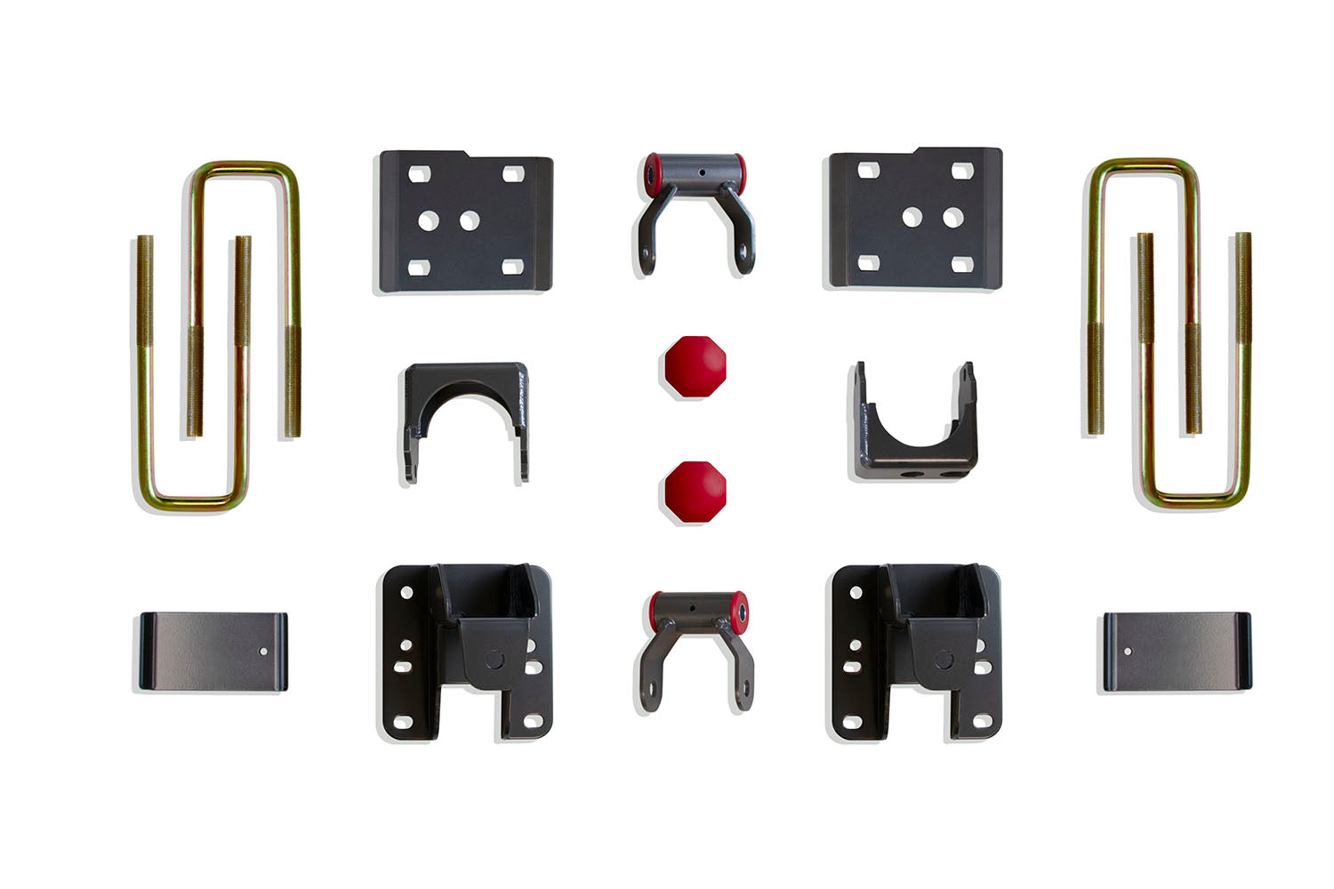 MAXTRAC SUSPENSION'S PART# 303150 IS A 5" REAR FLIP KIT INCLUDING AXLE RELOCATORS, SHACKLES, BUMP STOPS & SPRING PLATES