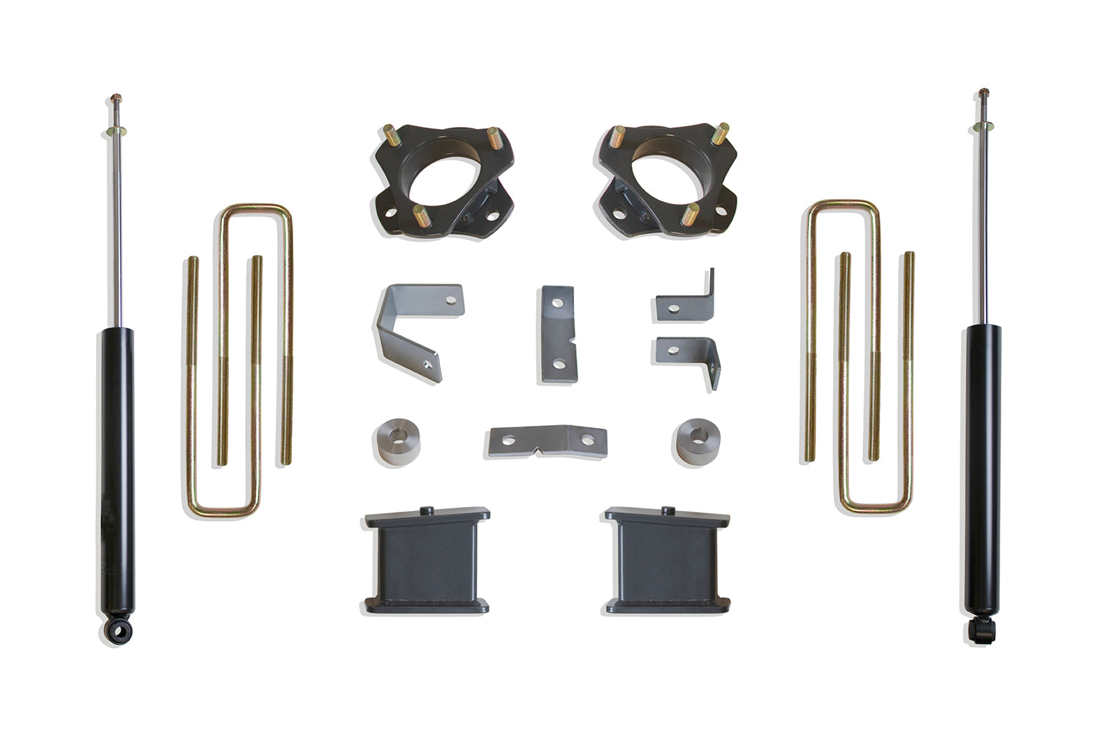 MAXTRAC SUSPENSION'S PART# 906840 IS A 4" REAR BOX KIT INCLUDING 2.5" LIFT STRUT SPACERS, 4" LIFT BLOCKS, U-BOLTS, A CARRIER BEARING SPACER W/ REAR BRAKELINE BRACKETS & A PAIR OF MAXTRAC REAR SHOCKS