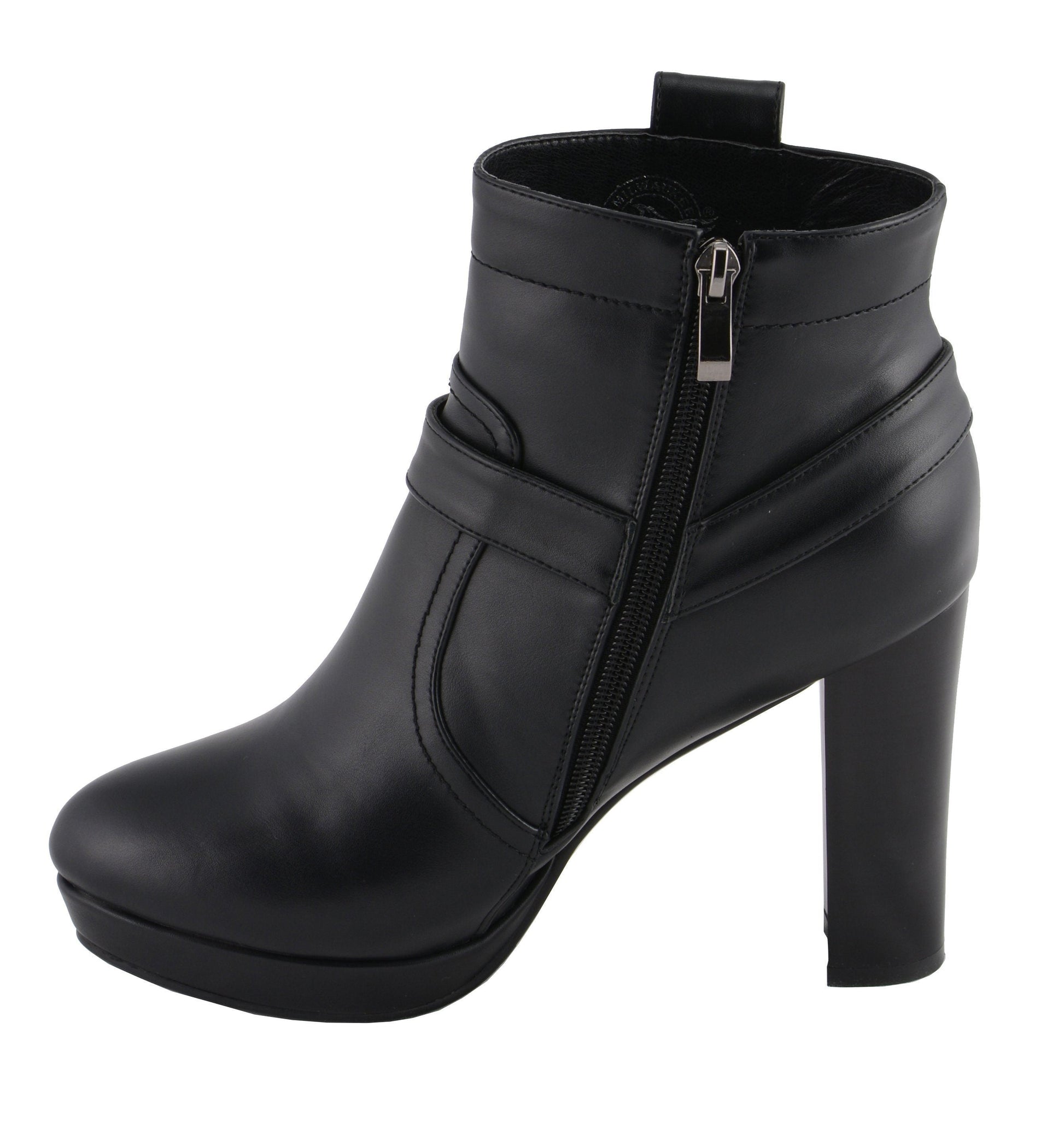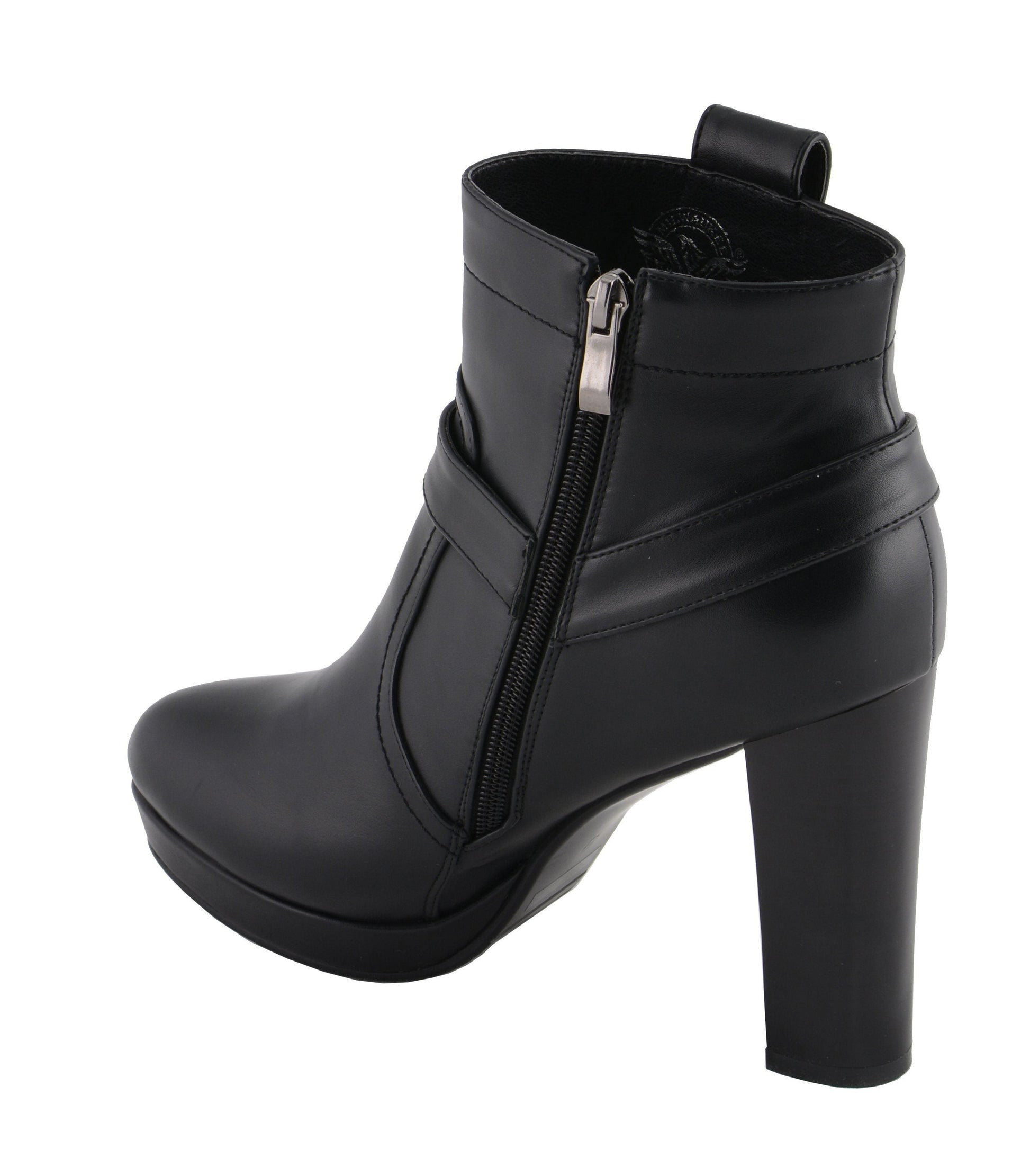 Milwaukee Leather MBL9432 Women’s Black Harness Ankle Boot with Block Heel