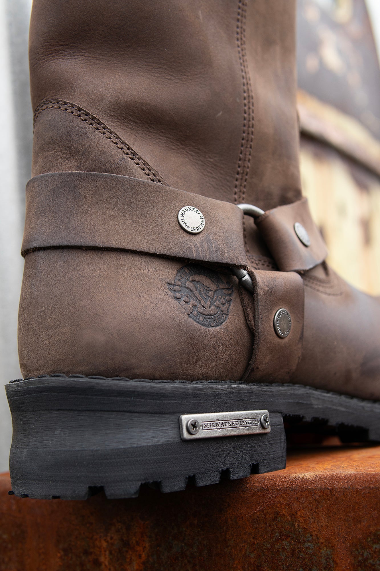 Milwaukee Leather Men's Classic 11-Inch Dark Brown Leather Harness Square Toe Motorcycle Boots MBM9062