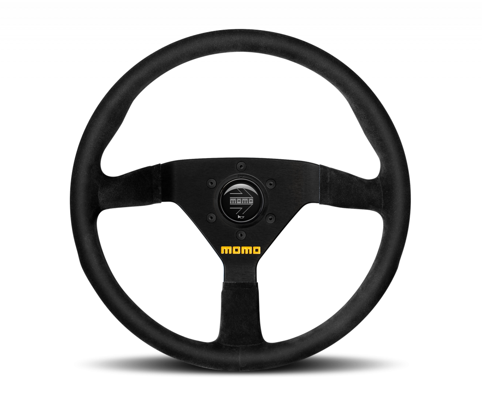 The MOMO MOD. 78 is a classic racing steering wheel popular with many drivers for its comfort and looks. The three-spoke pattern, circular form and thumb grips are what makes many racers feel that this is a natural fit to their car. Using the pre-drilled standard 6-bolt pattern makes for an easy install. A MOMO horn button is included. This 320mm diameter version in suede which has a 40mm dish. Spokes and suede are black.
