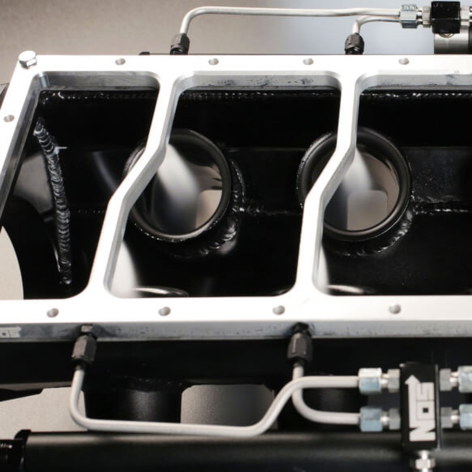 NOS NOS now offers innovative 1-piece billet aluminum dry nitrous plates designed to bolt between the upper lid and lower intake manifold on Sniper EFI Fabricated Race Series LS manifolds. These sandwich-style plates give you an easy way to add nitrous oxide to your Sniper EFI Race Intake equipped LS engine. Our plates are machined from billet 6061-T6 aluminum, laser engraved with NOS logo, then anodized for great looks and excellent corrosion protection. Our 1-piece plate features machined passages that precisely spray into the center of each cylinder. Plate includes jetting for up to 250 horsepower but is capable of supporting 1000+ horsepower. The plate is made from billet aluminum with passages machined directly into the plate so there is no need to worry about spray bars breaking or spinning.