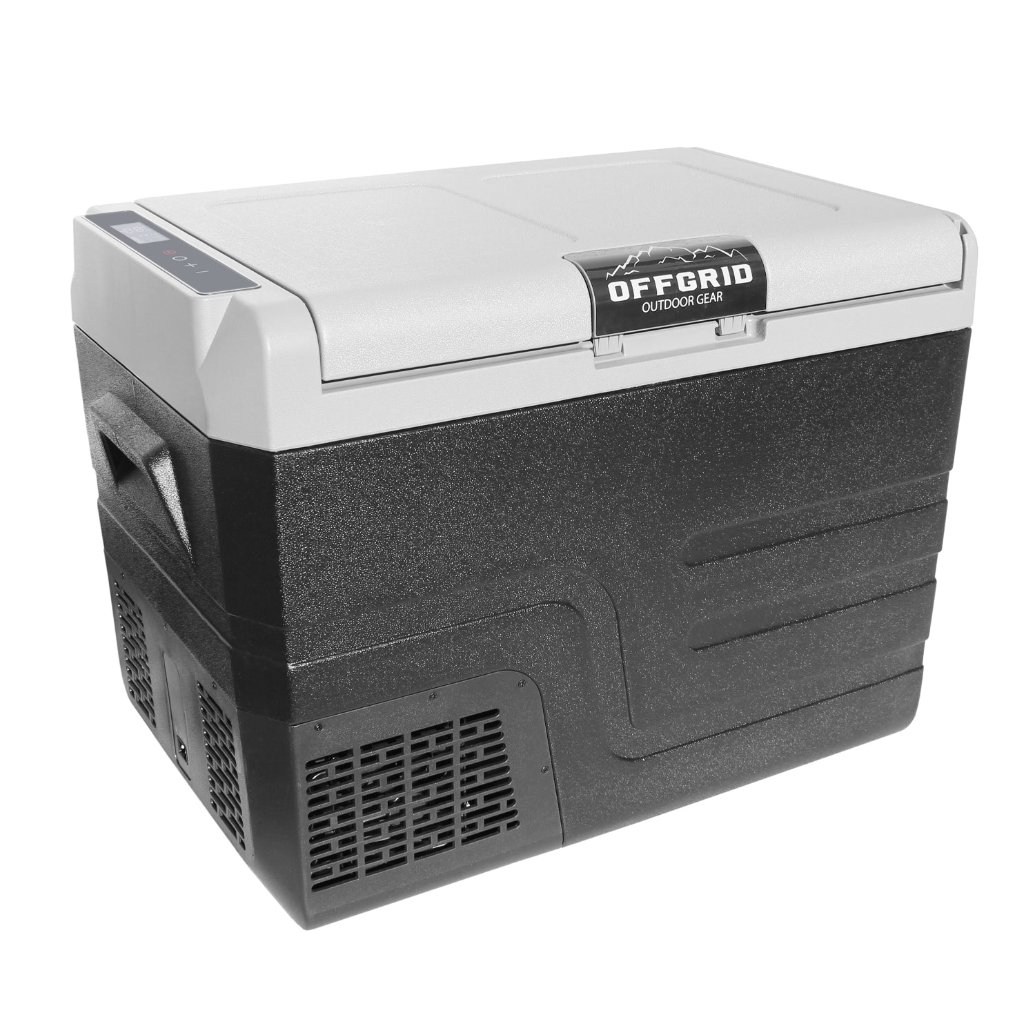 The OFFGRID 45L Electric Cooler provides excellent cooling performance with minimal power consumption. It can be used for refrigeration as well as for freezing! It is lightweight and easy to transport with a low weight of 35 pounds. A small footprint of 27x16x18.5 inches allows easy storage and is kept out of the way so it moves seamlessly from the home to the vehicle. Perfect for a day at the park or cross-country road trips. 50w power usage keeps it extremely efficient with quiet operation and has a digital touch pad temperature display. A Temperature range from 0 to 50F degrees without the need for ice and is easily button controlled. It operates on 12/24 Volts DC and 100-240 Volts AC. 3-Stage battery protection system ensures your vehicle's batteries can stay charged without running down. Memory maintains preset temperatures even if the system is turned off. The cooling compartment has two removable wire baskets to transport and separate your contents with ease. Large interior space has a capacity to hold 48 12oz cans or 28 16.9oz bottles. Energy-efficient LED interior light aids in finding items in low light. Great for adding refrigerator or freezer space to any RV, car, truck, SUV, or boat. With the ability to utilize multiple power sources you can take it with you on any adventure. The OFFGRID 45L electric cooler will bring years of performance through all your adventures. Backed by a 1-year manufacturer’s warranty on workmanship/structure, components, and materials.