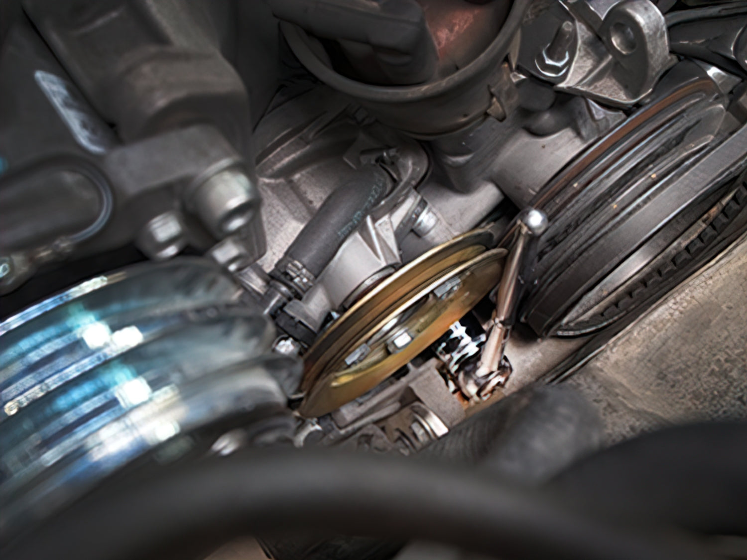 Tech tip: The right tools make the job possible, but you still need the right technique to make it as easy as it should be. First, you will need to remove the water pump/alternator and AC belts, then unplug the switch (the wire is often zip-tied to the switch, so a pair of long-handled wire cutters can come in handy for this step). Get the socket on to your ratchet (one with a thinner back is preferable) and fish it down in place. You may have to pry/push the engine tin down a bit to get a straight shot, but it does fit. You generally don't need to apply much force to get these switches on or off (torque spec is 18 ft-lbs.), so if it isn't angled perfectly perpendicular, don't sweat it, you just need to break it free and then it can be spun out by hand.