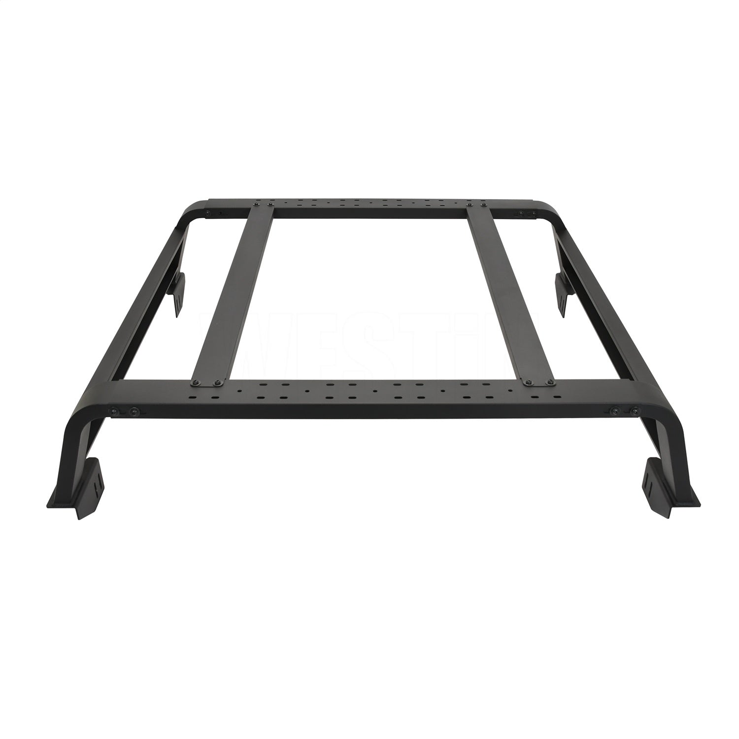 Maximize the cargo space and storage capacity of your truck with an all new Overland Cargo Rack from Westin. This multi-purpose bed rack "cargo management system" allows for a wide variety of off-road and overland gear storage, such as off-road jacks, RotoPaxTM gas cans , traction boards, shovels, rooftop tents, LED lighting and storage boxes, with multiple mounting positions and options. Constructed of 4" rectangular tubing and 14 gauge steel, this unique design utilizes the OEM bed rails for a no-drill mounting which is incredibly strong, but lightweight and easy to install. The low profile design was engineered to keep the cargo gear below the cab roofline, positioning most roof top tents to be flush with the top of the cab roof to reduce wind resistance and allow for easier garage parking. You can choose your preferred rack length (available in either 45" or 57" options), and top support rails which can be mounted in multiple positions as needed. It can also accommodate a wide variety of roof top tent footprints, making the Overland Cargo Rack perfect for any back country adventure.