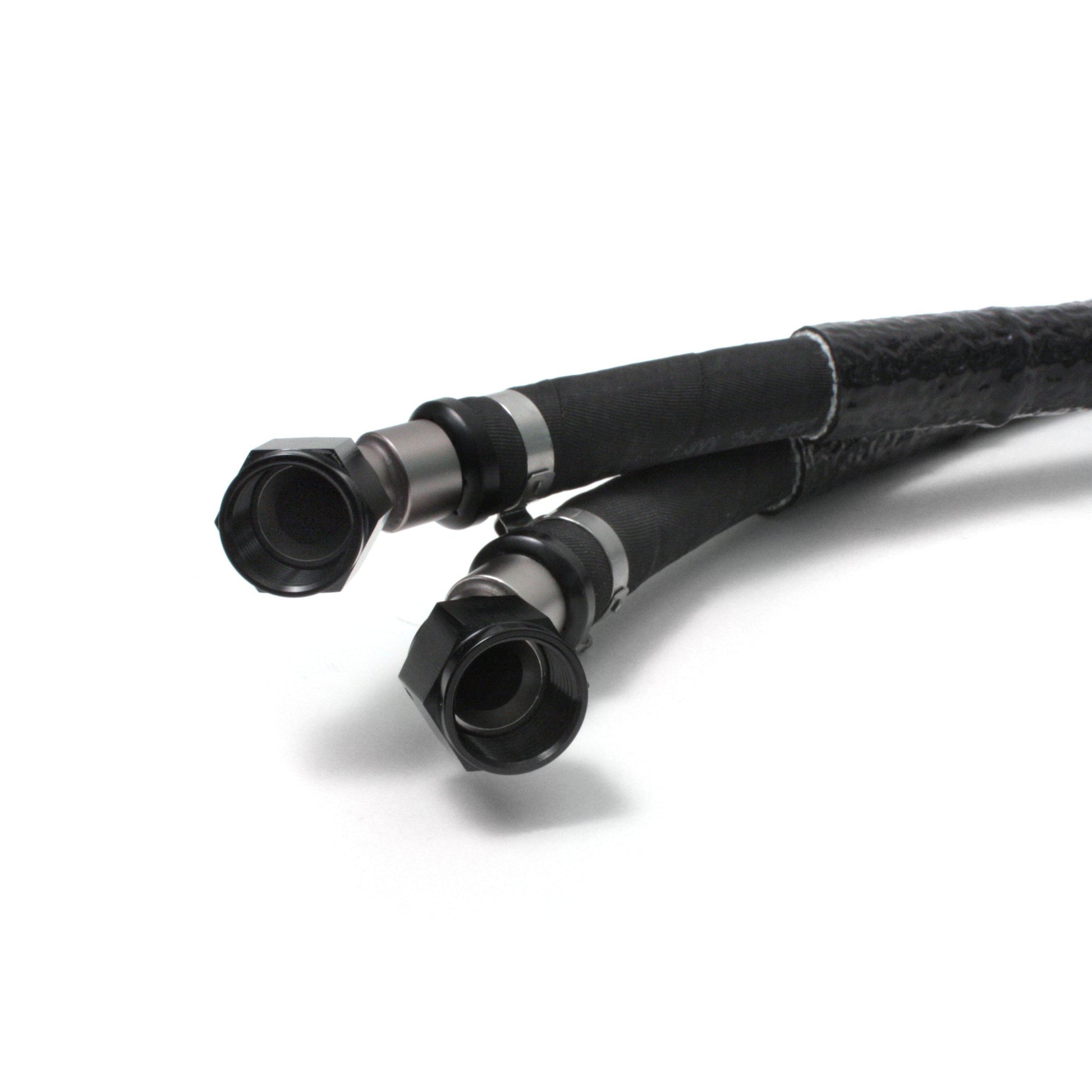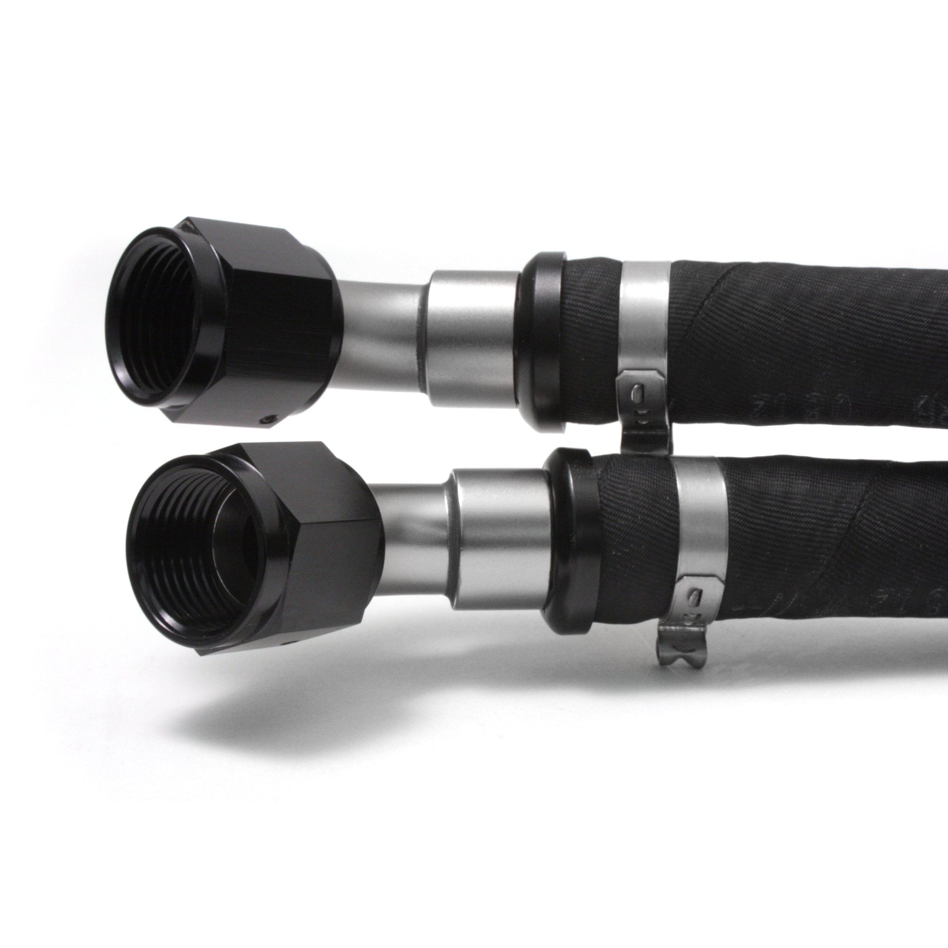 The PERRIN Oil Cooler Kit features lightweight Aeroquip brand -10 hose that are rated for 250psi and 300°F continuous temperature. Each hose comes pre-assembled and wrapped with our Industrial grade Pyrojacket that can withstand continuous exposure to 500° F (260°C) and up to 2000°F (1090°C) for 15-20 minutes.