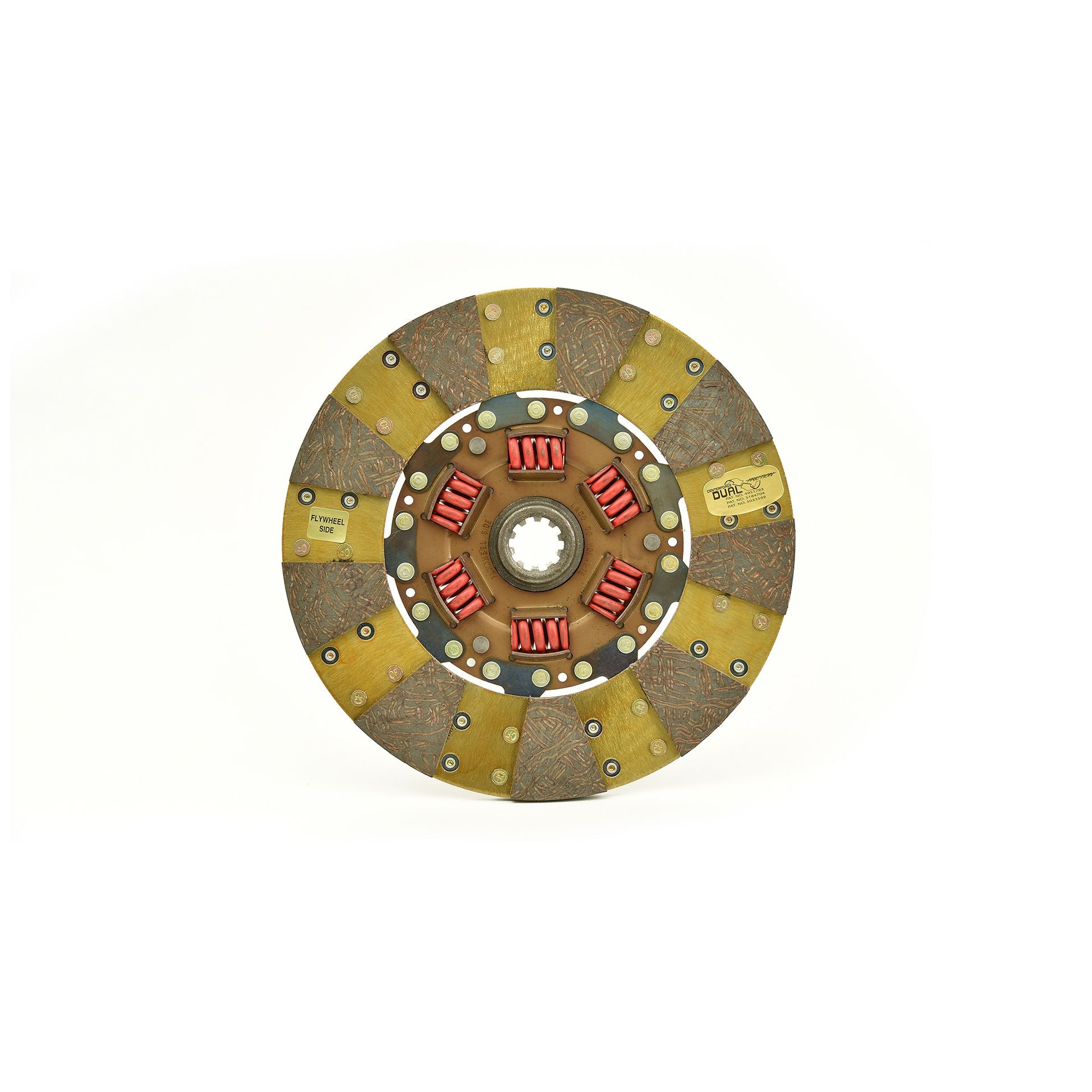 The Centerforce(R) Dual Friction(R) Disc Series uses a single disc with patented dual friction technology by distributing pressure plate clamp force evenly over a 360-degree friction-facing on one side of the clutch disc, while the opposing side uses a segmented friction-facing to concentrate clamping pressure and increase clutch holding-capacity. These discs are made for Centerforce Dual Friction pressure plates.