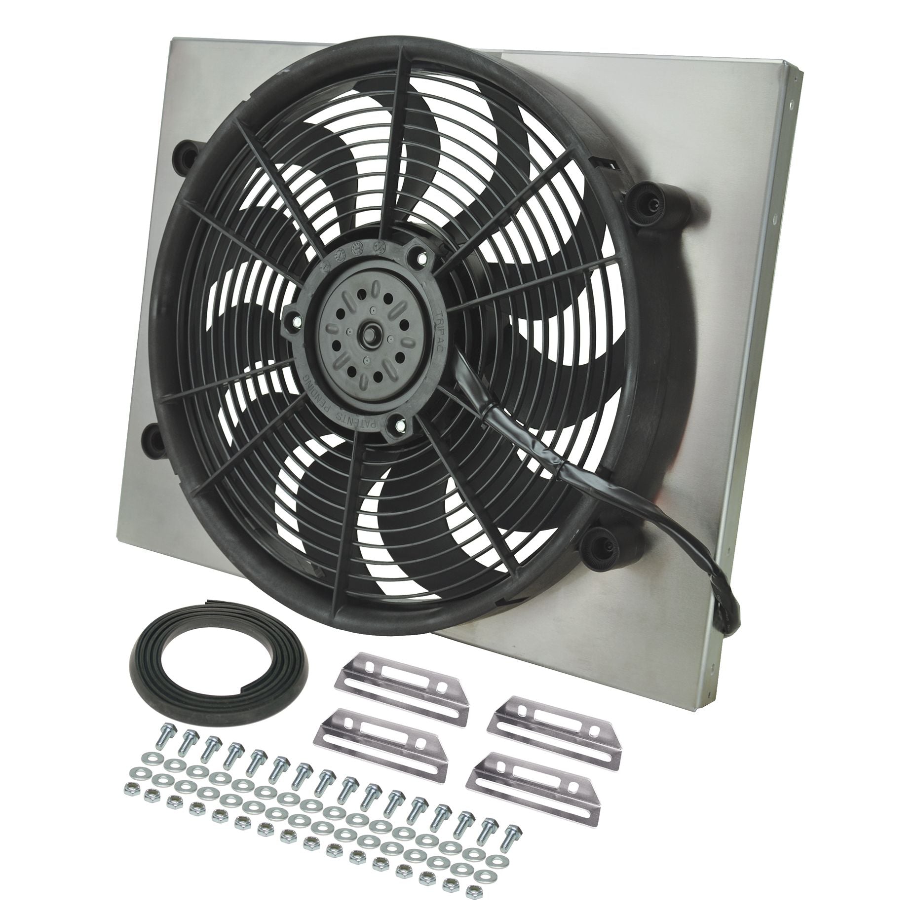 This High Output Single RAD Fan Powerpack is part of the new HO Aluminum Shrouded Fans Series designed with popular applications in mind. This assembly measures 21" wide by 16 3/4" top to bottom and only 3" thick overall to offer a precision fit. The raw aluminum shroud gives the user the freedom to polish, anodize, paint, or simply leave it natural to create a truly custom look for an affordable price. The 17" high output two speed fan is one of the best in our line-up offering 2400 CFM when on high to create the most airflow possible in a compact size.