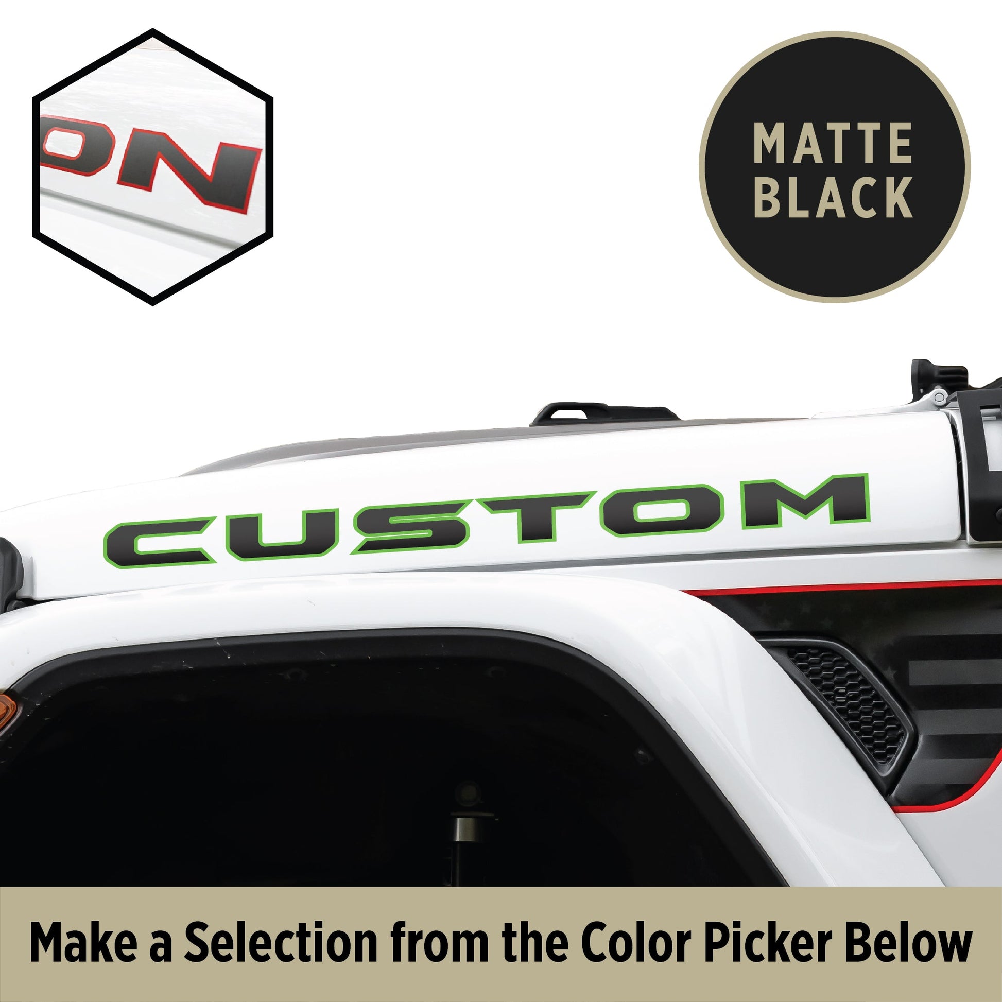 What's the difference? The premium hood lettering option has a matte black base with gloss accent colors which creates a premium look to match our hood graphics, tailgate graphics, and fender vent decals.