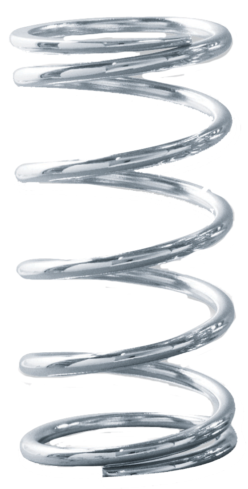 QA1's 2.5" I.D. Coil Springs are offered in 6" to 14" free length and available in a chrome plated or silver powder coated finish. QA1's springs are made with the highest quality materials to make them strong, consistent and have a long life. A lifetime guarantee ensures that all QA1 springs will stay within 2% of the original free height and rate under normal operating conditions. Chrome Silicon Steel (CrS), All QA1 springs are manufactured using the highest quality materials for high strength, consistency and long life. Cold Wound - Heat Treated - Shot Peened, All QA1 springs go through intensive manufacturing processes to ensure consistency, accuracy and durability. Squared Ends, All QA1 springs are ground at both ends to ensure straight, consistent and accurate operation. Protective Coated, QA1 springs are either silver powder coated for excellent longevity, or are polished and chrome plated for the ultimate in appearance. Lengths and Rates Marked, All QA1 springs are clearly marked with the free length of the spring and spring rate for quick and easy identification. LIFETIME GUARANTEE, All QA1 springs are lifetime guaranteed to remain within 2% of the original free height and rate under normal operating conditions.